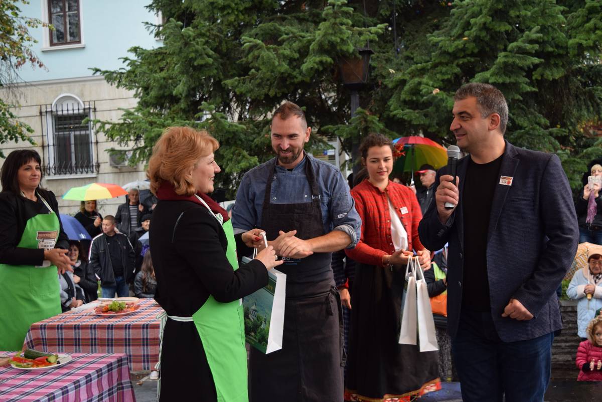 Тези, които бяха дошли в балканското градче още от петък, си мислеха, че лошото време ще уплаши другите и ще остане повече за хапване и пийване за тях. Да, ама не! Въпреки дъжда и вятъра, още в ранните часове Елена загъмжа от хора. Облекли дебелите якета и въоръжени с чадъри те обикаляха павилионите за мезета и вино, дъхав балкански мед, сушени билки, гъби и подправки, както и за различни занаятчийски изделия. Над 250 производители са изложили своята продукцията, поясниха от общинската администрация.