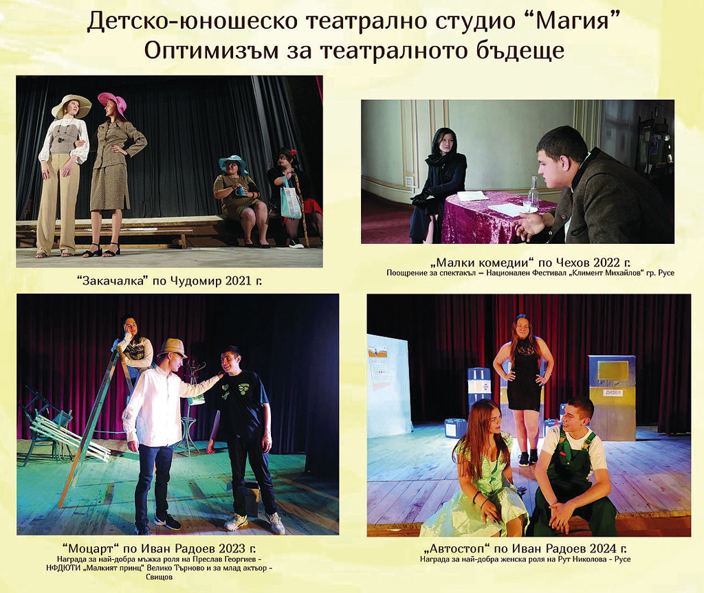 По стечение на обстоятелствата през тези 2-3 години театралният състав е изцяло дамски и режисьорът Василев с усмивка споделя, че му е било доста трудно да намери пиеси, в които да няма мъжки персонажи. Дамският състав обаче се справя блестящо и продължава наследената от предшествениците си традиции да печелят награди. През 2021 г. те стават Лауреат първа степен на Международната фестивална програма “Приятели на България”, провела се в Албена. Същата година печелят първа нгарада за най-добра театрална трупа на Националния фестивал на любителските театри “Камъка” в Горна Оряховица, а Рена Дранкюлева печели и първа награда за най-добра женска роля. През 2022 г. колективът печели първо място на Международния фестивал “Утринна зора” в “Златни пясъци” и е обявен за Лауреат първа степен на фестивала в “Албена”.
