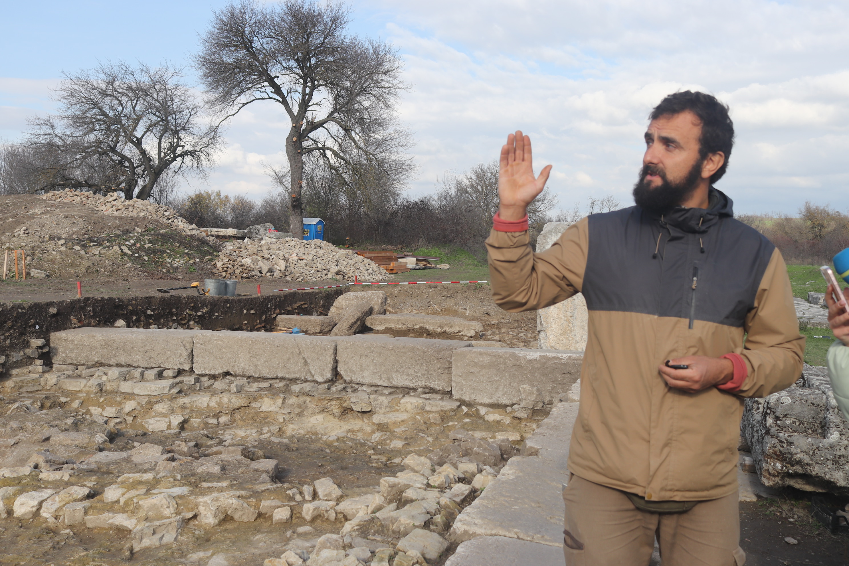 Вторият обект на Никополис ад Иструм, над който работи екипът на д-р Калин Чакъров, е една полукръгла обществена сграда с три стъпала, до която е имало фонтан с 24 отверствия за водата. Водата за фонтана е идвала от акведукт, дълъг над 20 км. „Когато са строили мостът над река Росица са били взети над 2000 каменни блока от античния град. И едно от нещата, които тогава са разрушили е бил този фонтан. Той вероятно е от времето на император Комод и наследникът му на трона император Септимий Север. Самата сграда е представителна с богата вътрешна украса, намерени са парчета от разноцветни мрамори, облицовки от варовик и изключително изящни архитектурни детайли. Намерени са и монети, върху които е изобразена сграда с полукръгъл план, за която се предполага, че била култова сграда нимфеум. Възможно е сградата от монетите да е сградата, която в момента проучваме“, предполага д-р Калин Чакъров.
