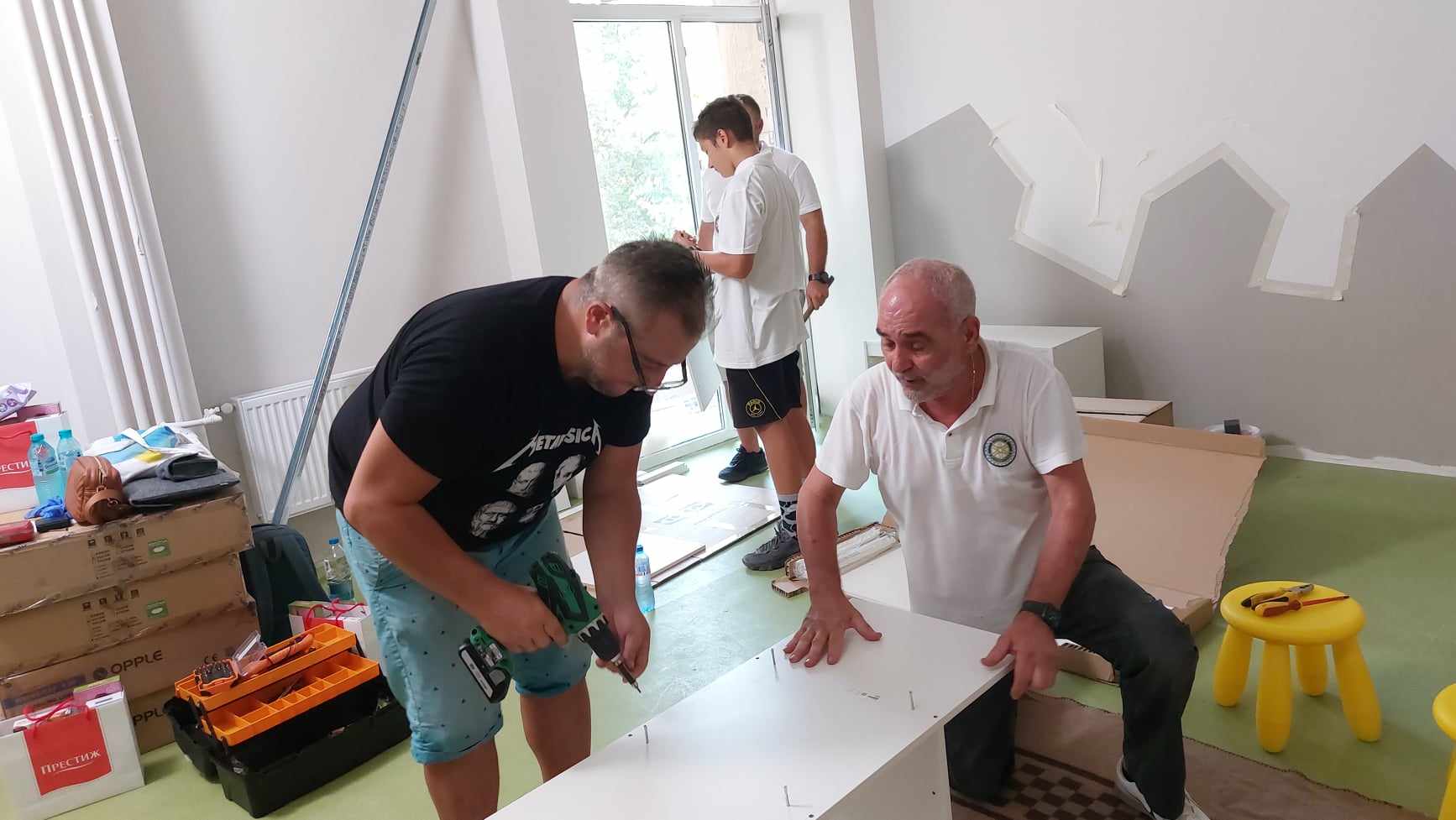 Завидни умения при сглобяването на мебели и в ремонтните дейности показаха адвокат Митко Минев, скулпторът Денислав Сираков и синът му, бизнесменът Веселин Марчев и други членове на РКВТ, които също се включиха в дейностите.