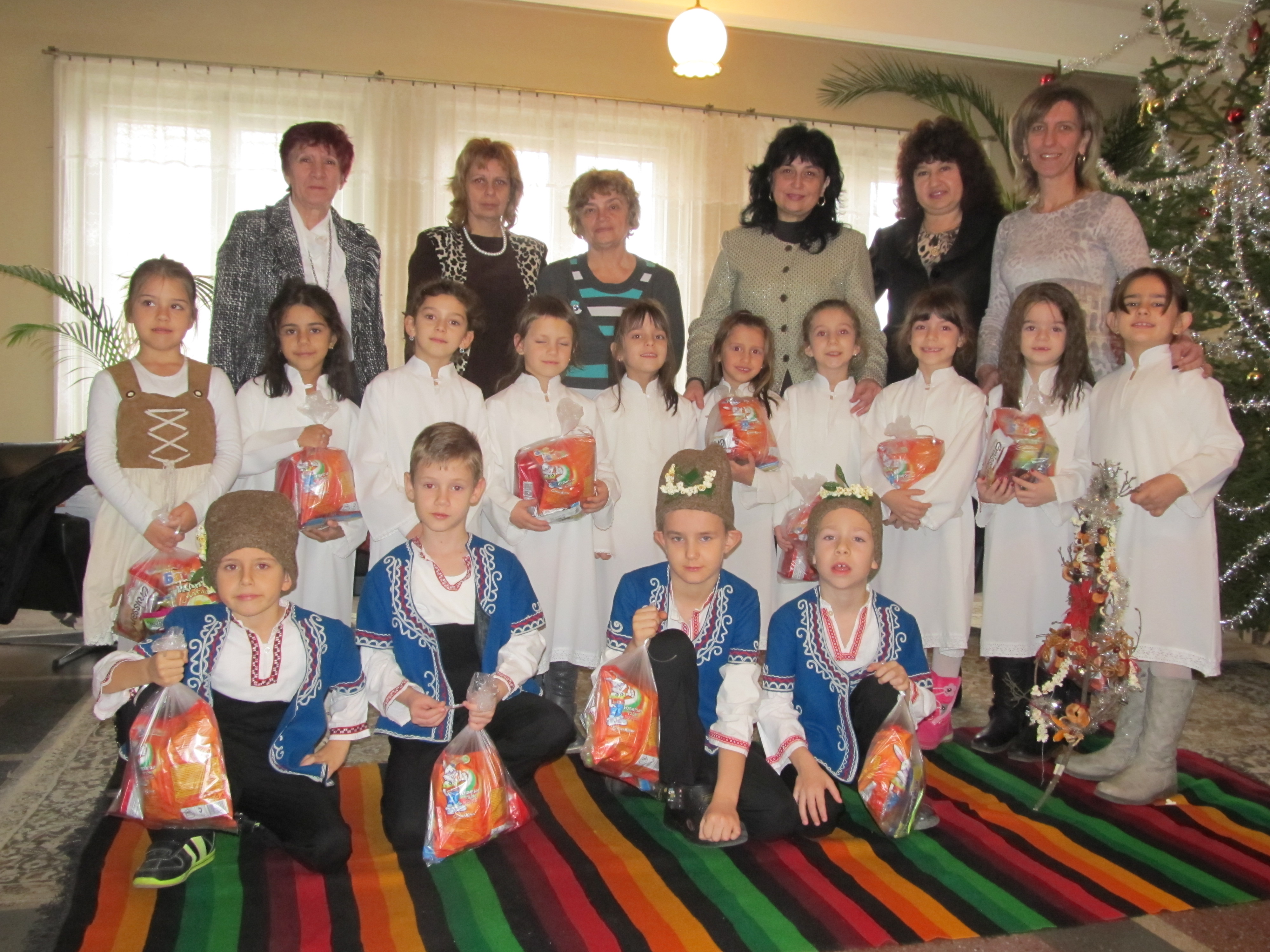 Децата от подготвителна група „Калинка” водеха директорът на детската градина Габриела Иванова и учителките им, с помощта на които хлапетата се справиха чудесно и със стихчетата, и с коледарските песни и танци. Дружината потропна с гегите и изрече „Да бъде!”, а най-главният коледар обърна калпак и служителите пуснаха парички с благодарност за хубавите пожелания. След като сурвакаха кмета д-р Гецова и председателя на общинския съвет Даниела Арабаджиева с красива сурвачка, лично изработена от тях, децата бяха поздравени за чудесната предпразнична програма. Д-р Гецова им благодари за радостните емоции, които създадоха за служителите на администрацията и им пожела да са здрави и да намерят под домашните елхи най-желаните подаръци. Тя даде на всяко коледарче пакетче с лакомства, а после всички се снимаха с ръководството при общинската елха.