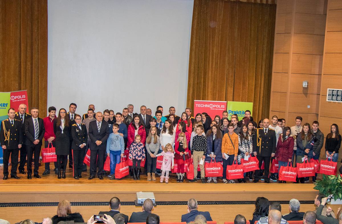 София, 12 декември 2017 г. – Деца на загинали и пострадали при изпълнение на служебните си задължения полицаи получиха по традиция подаръчни ваучери от Технополис и Практикер днес в Академията на МВР в София. Благородният жест е част от ежегодната съвместна благотворителна инициатива на Министерство на вътрешните работи и Видеолукс Холдинг, собственик на двете вериги магазини.