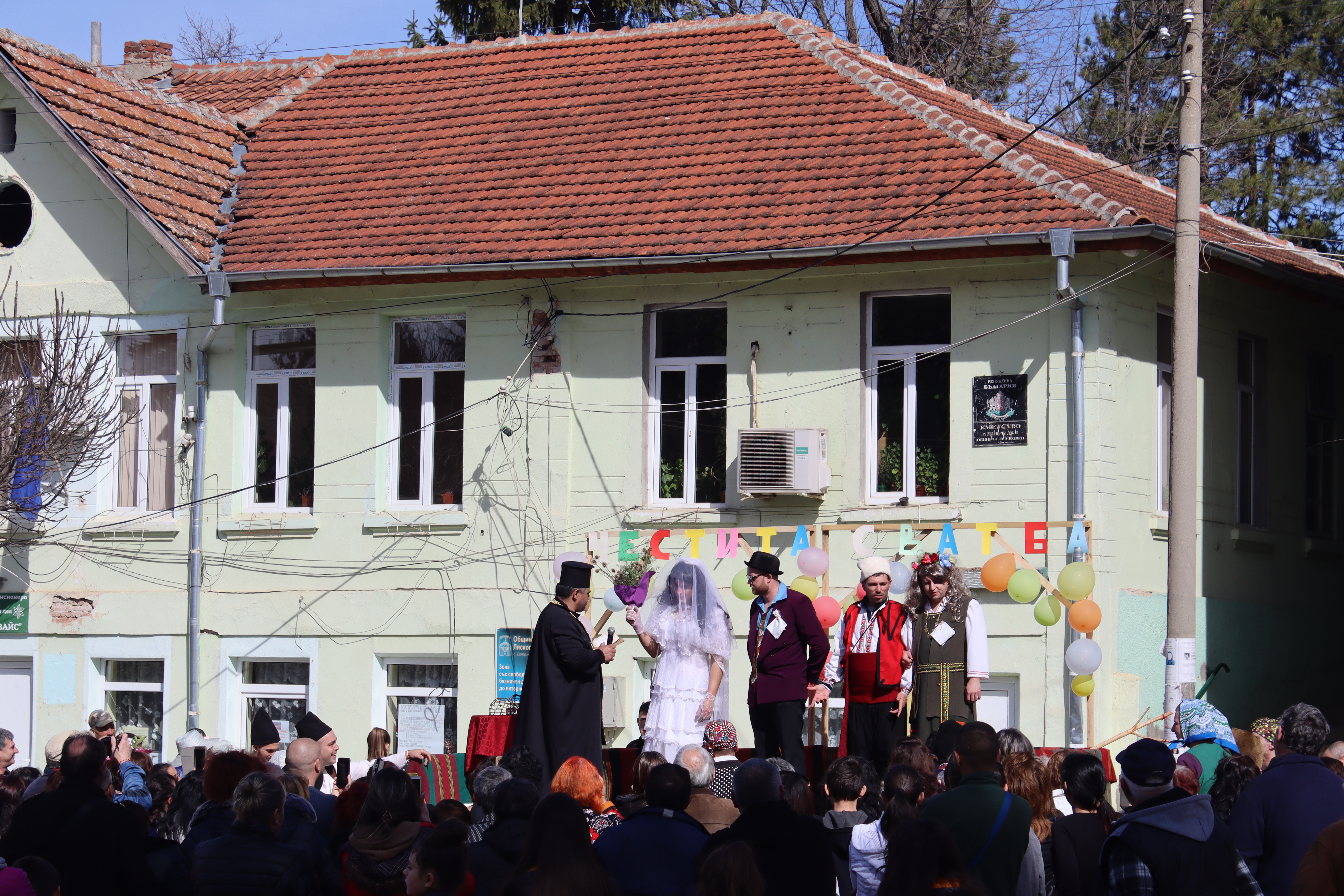 Сватбата започна още преди обяд със събиране в дома на младоженеца Гено Топузанов. После както си му е реда сватбарите си взеха кумовете, които да освидетелстват брака. В ролята на кумове влязоха Борислав Ангелов – кум и кумица – Милен Минчев. С було в деня на Баба Марта се окичи Валери Николов и така булката каза заветното „Да” на площада на импровизирана сцена. Преди това обаче двамата млади минаха под звуците на сватбения марш по червен килим и младоженика публично пред всички бе обръснат. Венча ги попа, а ролята му беше изпълнена перфектно от Ганчо Куруджиков. След като кмета им връчи свидетелството за брак Примадона Коконкова и Малчо Големанов вече получаваха подаръци и поздравления. Тържествената част завърши и се започна веселба, като първо кумовете показаха на младите, как могат да играят. Надиграването за даровете бе последвано от булчинско хоро и то събра десетки добридялчани, дошли на мегдана да се посмеят и да похапнат кебапчета за здравето на младото семейство. За сватбената церемония се събраха и много от по-възрастните мъже, участвали в добридялски ергенски венчавки назад в годините. Тазгодишната Ергенска сватба в Добри дял имаше общо 33-ма доброволци-актьори, като най-младите бяха 18-годишни, а най-възрастните – на 60 години.