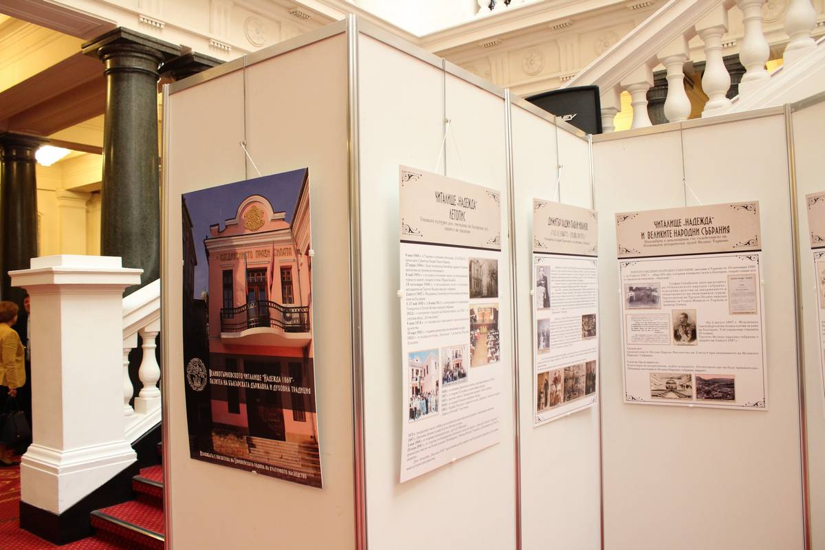 Изложба представи в Народното събрание историята на читалище „Надежда – 1869“ и дейността на Клуба по битова култура. Експозицията „Великотърновското читалище „Надежда – 1869“ – пазител на държавната и духовна традиция“ имаше за цел да популяризира както самото културно средище и ролята му в обществения живот на Велико Търново и България, така също съхранението на традициите и нематериалното културно наследство.