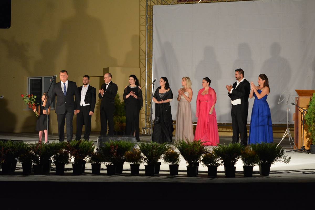 „Успях да се запозная с инж.Манолов през 2012г. когато той връчи на Никола Гюзелев официално плакета за почетното гражданство. Аз съм много щастлива, че съм тук, когато сте решили да назовете своя прекрасен летен театър на негово име“, каза съпругата Анна Мария Гюзелева. Тя разказа за предстоящите чествания в цялата страна и чужбина, свързани с 80-та годишнина от рождението на големия оперен певец.