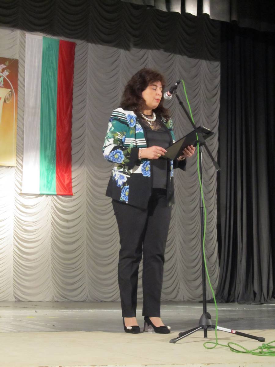 В НЧ „Напредък-1870” присъстващите бяха първо поздравени с най-българския празник от кмета на Общината д-р Ивелина Гецова. В словото си градоначалникът пожела на учителите да са винаги така предани на благородната си мисия да дават знания, на учениците – освен здраве, пожела да бъдат отговорни и ученолюбиви, а на културните дейци – все така да пазят духовните ценности и да развиват с любов и отдаденост изкуството. „Наричаме 24 май най-българския празник. Нека винаги такъв да остане – прастар и вечен като земята ни, красив и цветен като мечтите ни, уникален като вековните ни традиции и нека винаги заедно с гордост да го празнуваме! Да ни е честит и нека щедро ни дарява с оптимизъм и родолюбие”, каза още д-р Гецова.