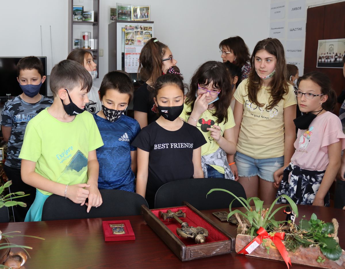 Децата бяха посрещнати първо в заседателната зала, където се провеждат заседанията на местния парламент. Д-р Гецова ги запозна с органите на местната законодателна и изпълнителна власт, разказа им как се разрешават въпросите, свързани с образование, култура, спорт, икономика, разказа им за текущата работа в общината, разясни им каква е структурата на общинска администрация, какви функции изпълняват служителите, какво е това бюджет, местни данъци и през цялото време отговаряше на въпросите на децата, които живо се интересуваха от всичко, свързано с работата на хората, управляващи родния им град. Децата бяха запознати и със символите на града – химн, знаме, герб, които им бяха показани още в заседателната зала. За да придобият представа за работата на кмета, учениците влязоха и в кабинета на градоначалника и дори седнаха да изпробват кметското кресло. Поинтересуваха се как се става кмет, директор и почетен гражданин и обещаха да учат много, за да станат някой ден достойни граждани и да заслужат плакет или почетен знак. В кметския кабинет бяха така любознателни да разберат всичко и за другите символи – ключа на града, кметската огърлица, както и почетния знак, с който се удостояват граждани, допринесли с делата си за развитието на Община Лясковец. С голям интерес 20-те момичета и момчета се „разходиха“ и по кметската алея, разглеждайки предците ни, управлявали през годините Лясковец. По време на урока с възхищение се взираха и във всички лъскави купи и награди в специалната витрина на славата. И за нея получиха пълна информация и бяха възхитени от факта, колко много отличия имат кмета, екипа му, общинските спортни отбори, самодейните състави, читалищните и други институции и колко труд са положили, за да ги завоюват.