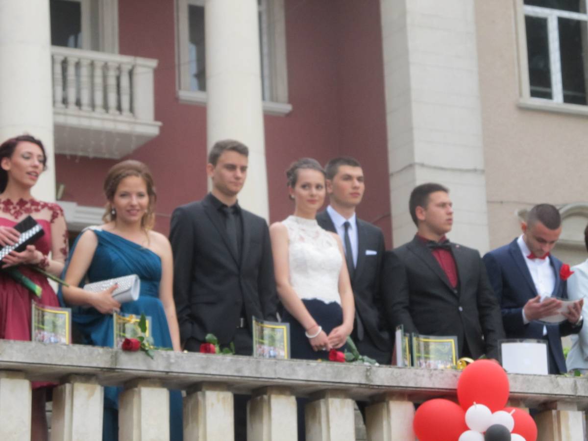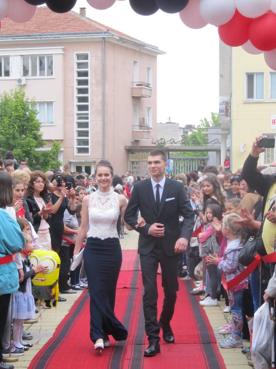 И тази година абитуриентите на Лясковец не изневериха на традицията да дефилират по червения килим пред всички лясковчани. Въпреки капризите на времето, в крайна сметка всички момичета и момчета смело и с усмихнати лица преминаха по червена пътека. Два класа на гимназията бяха изпратени с радост, вълнение и аплодисментите на събралите се за събитието граждани, които мъдро отбелязваха, че „ще им върви по вода”.