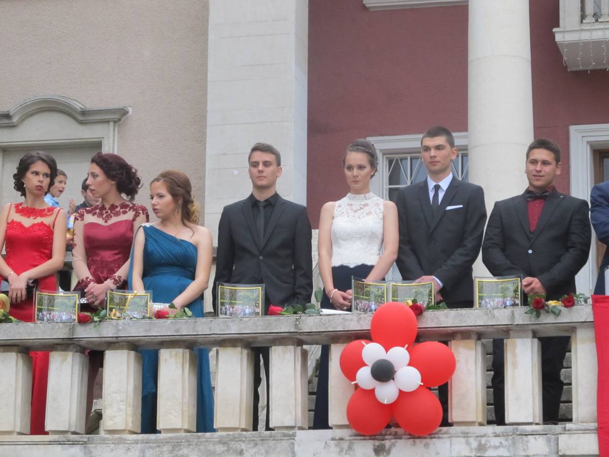 В празничния майски ден десетки погледи видяха дефилето на абитуриентите, завършващи 12 клас в нашата гимназия. Зрелостниците минаха под красива арка с балони, за да се сбогуват с кмета на града, с директора на училището и своите класни ръководители Здравка Манева и Николай Банабаков. Община Лясковец и ръководството на СУ „М. Райкович” и тази година организираха официалното им изпращане, като откриването на празника започна с пристигане и обявяване имената на всички зрелостници. Кметът д-р Гецова и директорът на училището Даниела Арабаджиева ги посрещнаха на сцената пред читалище „Напредък-1870”, като им поднесоха рози, поздравления и плакети за спомен. Преди да напуснат града и да поемат по необятните пътища на зрелия живот, кметът ги приветства с успешното приключване на учебния процес. На порасналите момичета и момчета д-р Гецова пожела здраве и попътен вятър в океана на живота.