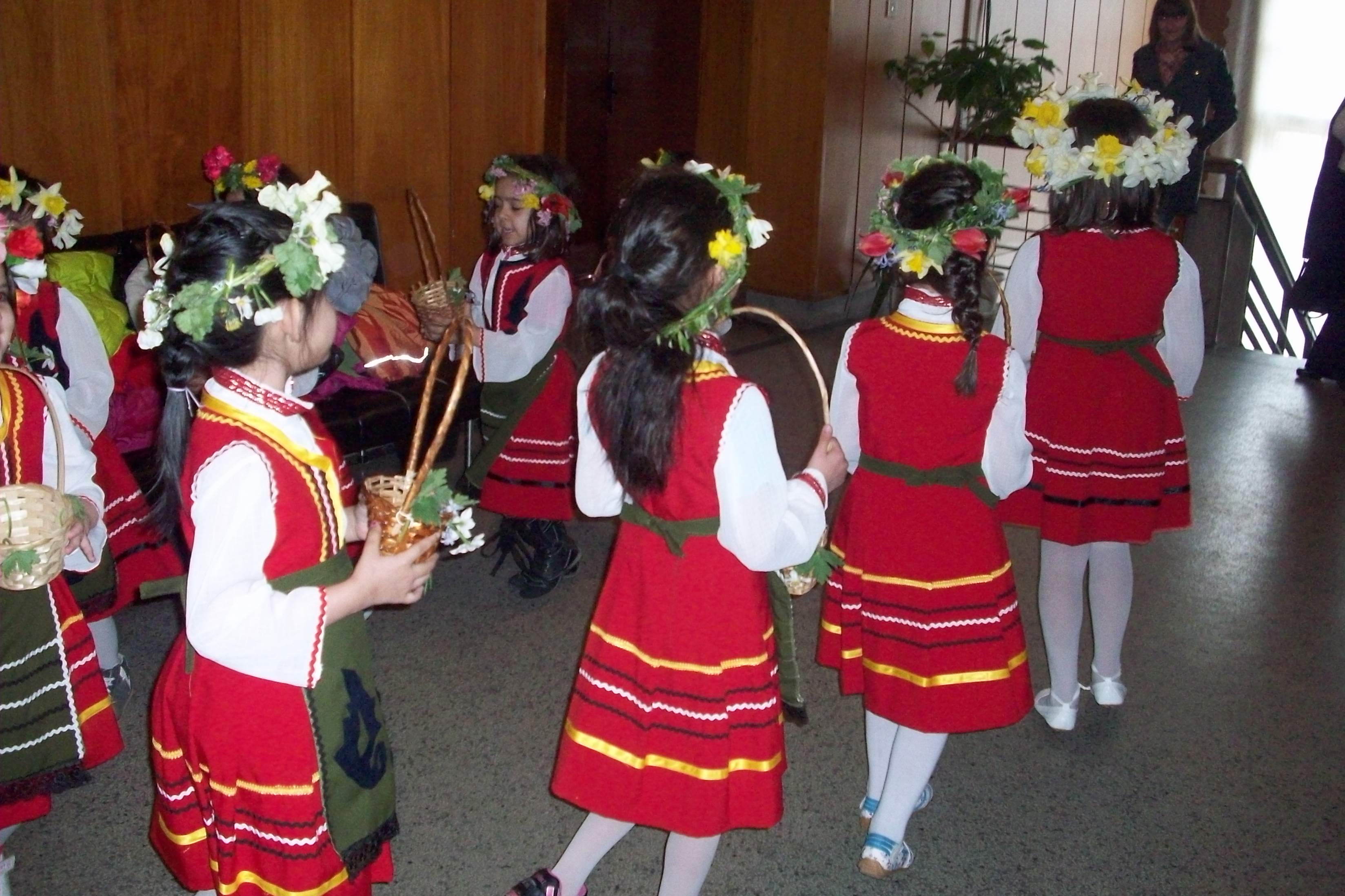 Момиченцата от подготвителна група ЦДГ ”Славейче” гр. Златарица бяха пременени в пъстри, традиционни за празника носии и накичени с красиво сплетени венци. С помощта на своите учителки те представиха програма от народни песни, танци и наричания за здраве, берекет и благополучие, с които поздравиха служителите на Община Златарица, посетиха търговски обекти, църквата и Дома за стари хора в града.