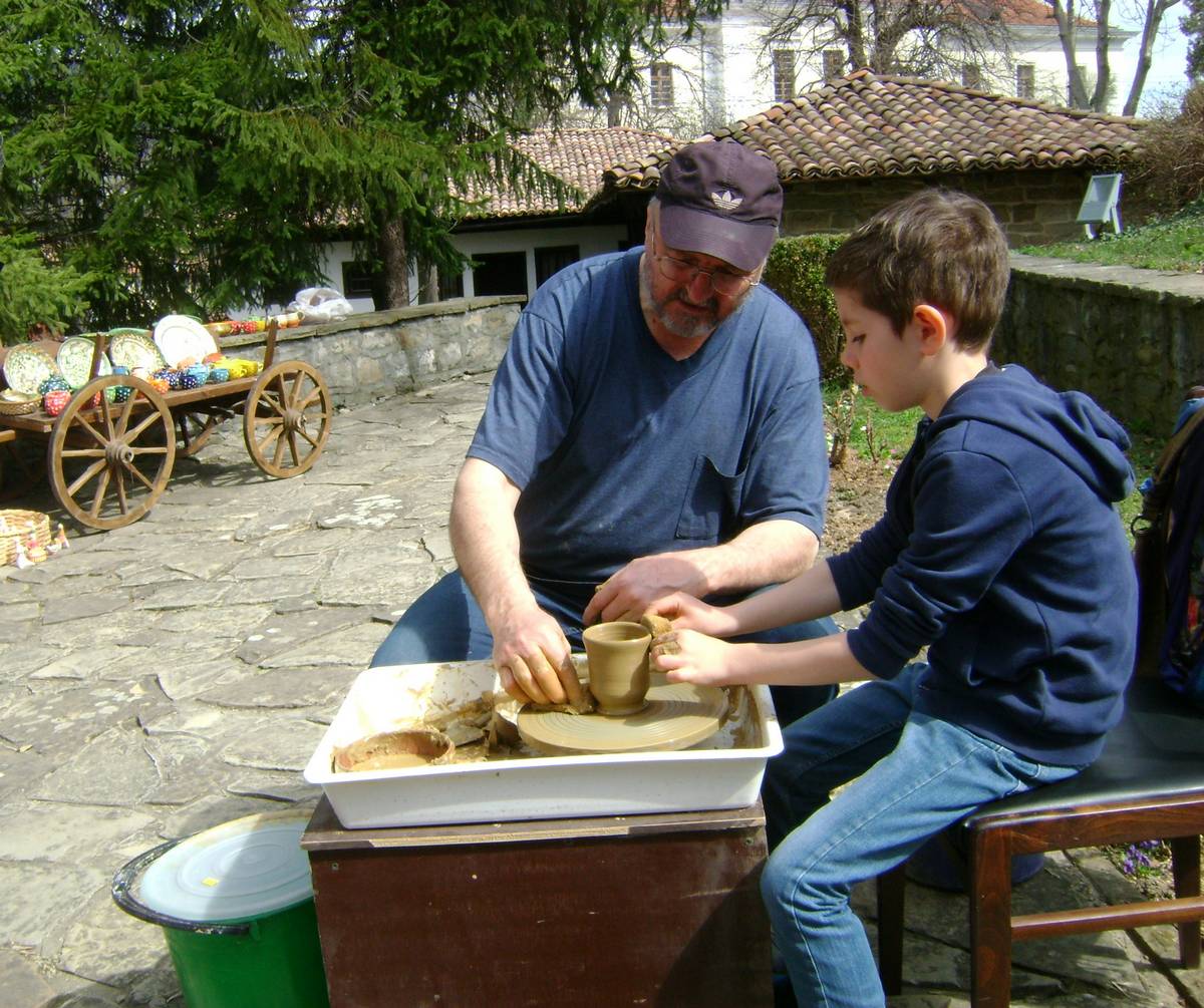 Снимките на победителите: Назар Хасанова – първи уроци по грънчарство по време на Европейските дни на художествените занаяти в Елена, Гюлбие Юсеинова – Баба Марта при децата от училището в Константин.