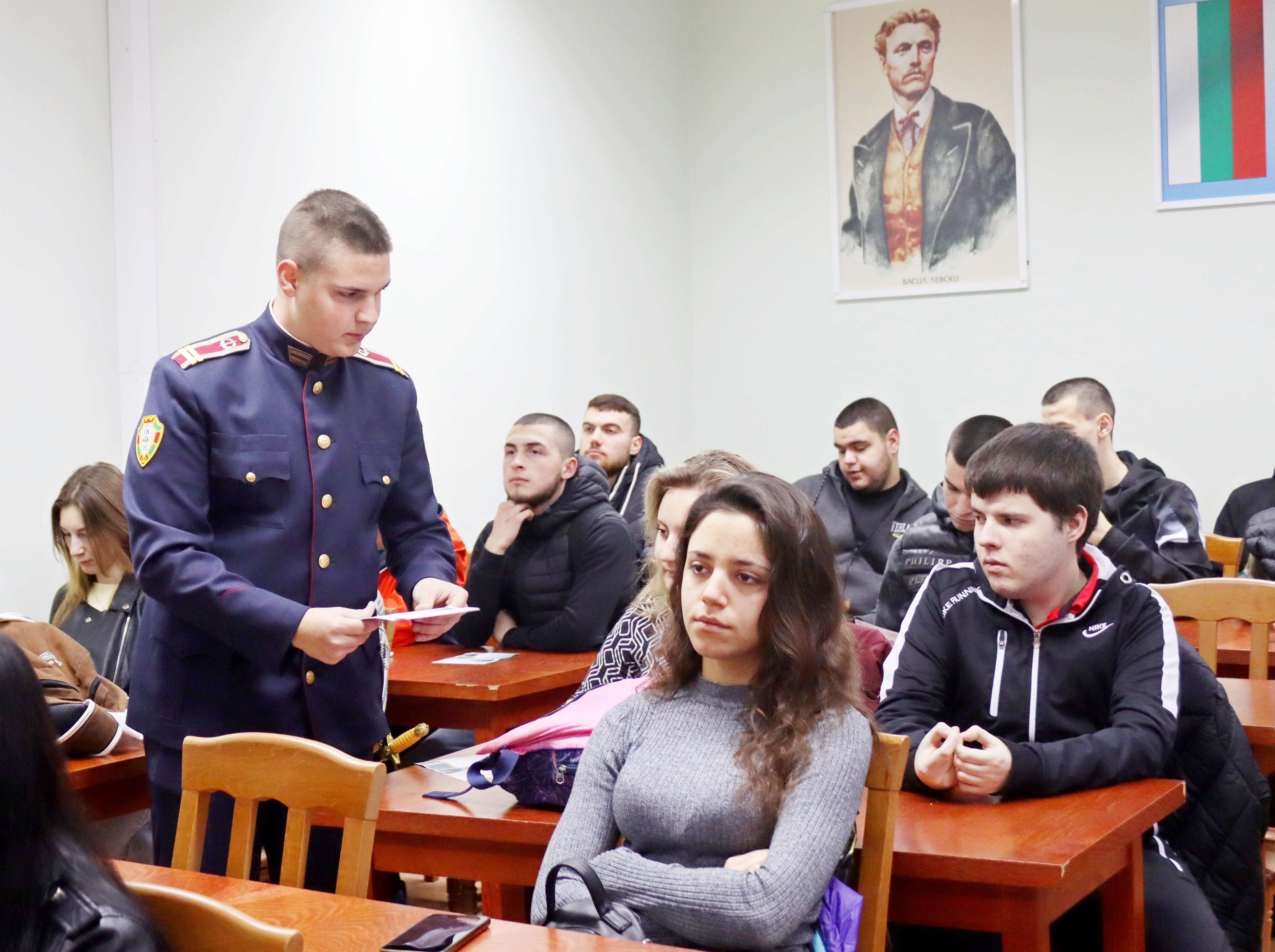 В Лясковец с випускниците се срещнаха двама курсанти второкурсници с направление Специални средства „Придвижване и транспорт“, които разясниха на учениците от най-горните класове, какви са възможностите, които дава обучението във военния университет във Велико Търново и факултетите в Шумен и Плевен. Те направиха изчерпателна мултимедийна презентация, показаха клипове от обучения и раздадоха на присъстващите младежи рекламни материали брошури за НВУ ,,Васил Левски“. Запознаха подробно випускниците с реда и начина за кандидатстване, с подготовката за изпитите, балообразуването и сроковете за кандидатстване, както и с последващата реализация на пазара на труда след завършване на обучението. Инж. Валентин Ениманев, експерт в местния общински офис за военен отчет и дошлите да промотират избраното от тях професионално направление настоящи курсанти на университета, както и подп. Тинков, представиха накратко и историята на университета, неговата академична структура, военните специализации, по които могат да се обучават желаещите, както и всички предимства, които носи обучението в университета. Подполковник Тинков разясни и алтернативната възможност, от която могат да се възползват випускниците – кандидатстване за срочна служба в доброволния резерв.
