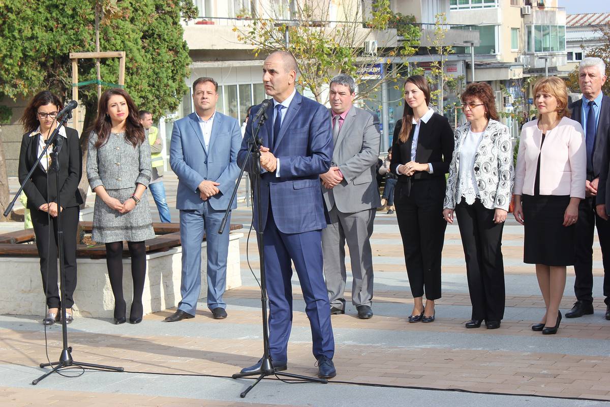 Областният управител проф. Любомира Попова, евродепутатът Ева Майдел и деца от Горна Оряховица прерязаха лентата на обновения градски площад. Протоколът разчупи Цветан Цветанов, председател на парламентарната група на ГЕРБ и депутат от Великотърновски избирател район, който покани децата да открият най-новата придобивка за Г. Оряховица. Заедно с кмета на града инж. Добромир Добрев, двамата асистираха на децата.