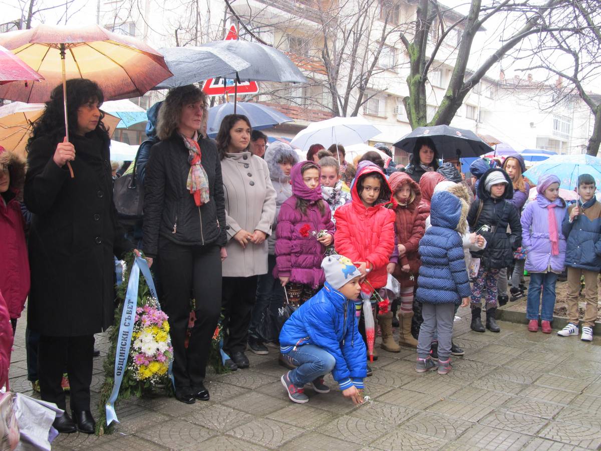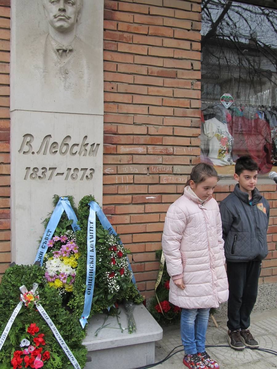 Да се поклонят пред Апостола дойдоха и много деца от училищата със своите учители. По-големите ученици от гимназията се стекоха пред паметния знак на великия българин под звуците на тържествена музика, изпълнена от фанфарния състав на СОУ „Максим Райкович”, с ръководител Нели Гургева. Деца от начален и среден курс на училището взеха участие във възпоменателния ритуал, изпълнявайки стихове за Левски. В програмата за честването се включи и читалищната вокална група „Бели ружи”, с ръководител Добринка Стателова, като певиците изпълниха скръбната Ботева песен „Обесването на Левски”. Панихида отслужиха отец Богдан и отец Никола, а Димитър Байчев – председател на Общински комитет „Васил Левски”, произнесе възпоменателни слова в памет на Апостола. Венци и цветя на признателност положиха общинското ръководство, общинският комитет, Съюзът на ветераните и офицерите от запаса и резерва, партии, организации, училища, детски градини, футболен клуб „Левски” и много граждани.