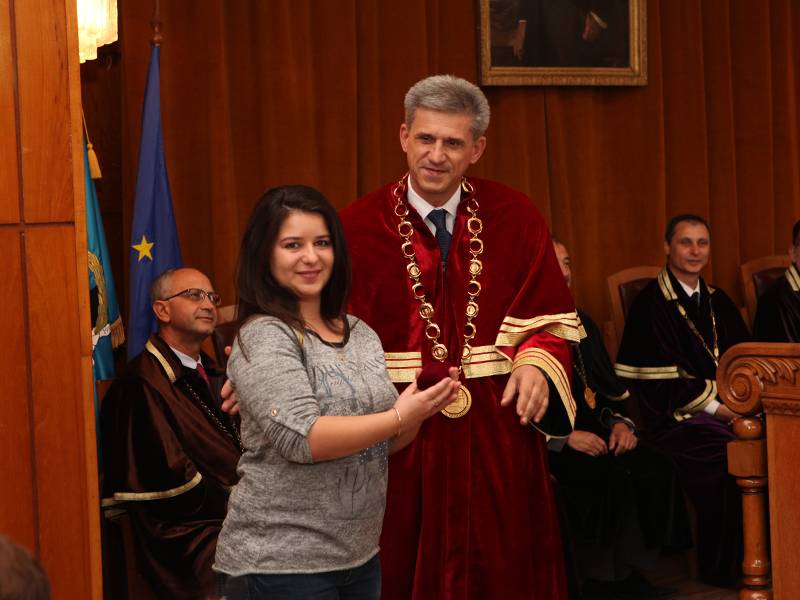 По традиция в рамките на церемонията се състоя и официалното награждаване на отличниците на випуска. От завършилите през 2016 г. ОКС „бакалавър”, четирима студенти са с успех „Отличен 6.00” от следването и „Отличен 6.00” от държавния изпит. Наградата на Ректора и академичното ръководство получи Ивона Сеферска, специалност „Стопански и финансов контрол”. Доц. Марчевски й връчи сребърна значка със златно покритие „Отличник на випуска” (копие на значката от 1940 г.), грамота и парична награда в размер на 1000 лв. Наградата на Общинският съвет – Свищов, която се присъжда за отличник на випуска, тази година кметът връчи на Николета Костова, специалност „Счетоводство и контрол”. Освен наградата на Общината, Николета също получи от ректора значката за отличник на Стопанска академия. Другите двама пълни отличници на випуск 2016 са Екатерина Митева и Станислав Шишманов  – “Счетоводство и контрол”. Те бяха удостоени с награди от фондация „Ценов” – също сребърна значка със златно покритие, грамота и парична награда в размер на по 1000 лева. Отличниците благодариха за наградите и увериха първокурсниците, че са направили най-добрия избор – Стопанска академия „Димитър А. Ценов”.