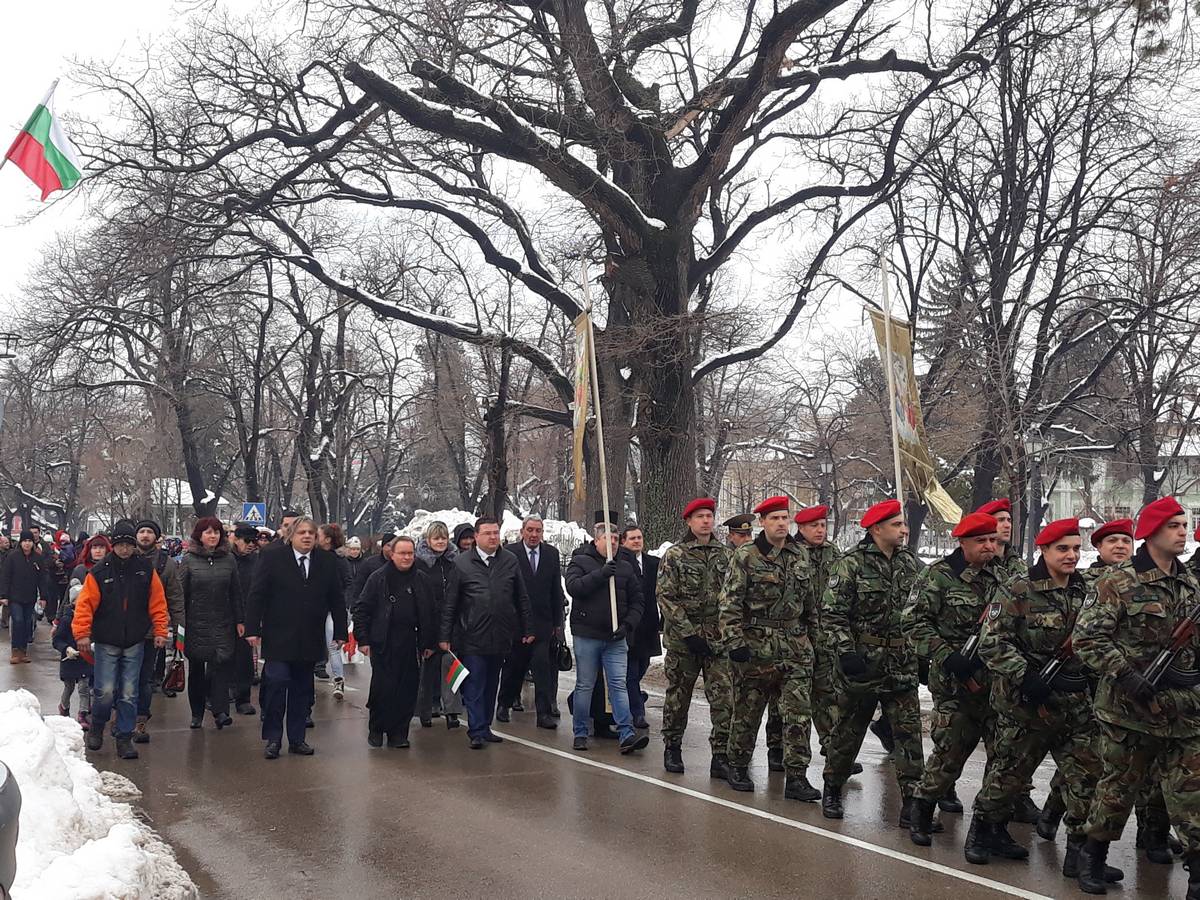 На празничния 3 март, честванията в крайдунавския град започнаха от 10.00 ч., в емблематичната за Свищов църква „Света Троица“. Отец Михаил отслужи благодарствен молебен за най-значимото събитие в историята на България, след което програмата продължи на централния площад „Алеко“, където от 11.00 часа се проведе военен ритуал по издигане на националното знаме на Република България. Ритуалът се изпълни с особена тържественост от 55-ти инженерен полк – гр. Белене, на фона на българския химн, в изпълнение на духовия оркестър на Военно формирование 28880. След като българският трибагреник се развя гордо в центъра на първия освободен град, военните се строиха с тържествен марш и поведоха всички присъстващи, с празнично шествие към площад „Свобода“. Там, на паметника на Свободата, отец Михаил отслужи панихида в памет на всички знайни и незнайни воини, загинали за Свободата на България, а общоградското поклонение приключи с тържествен ритуал по полагане на венци и цветя.