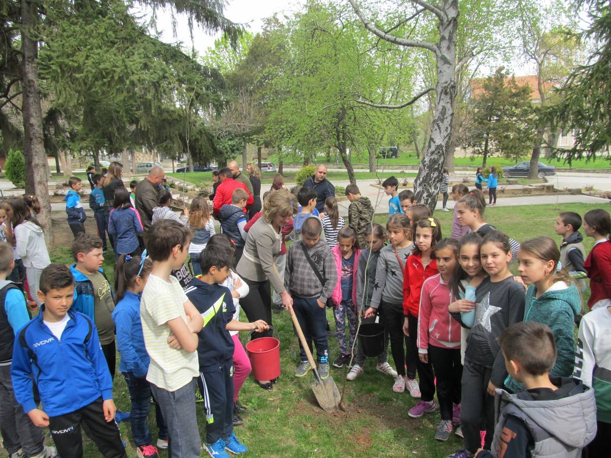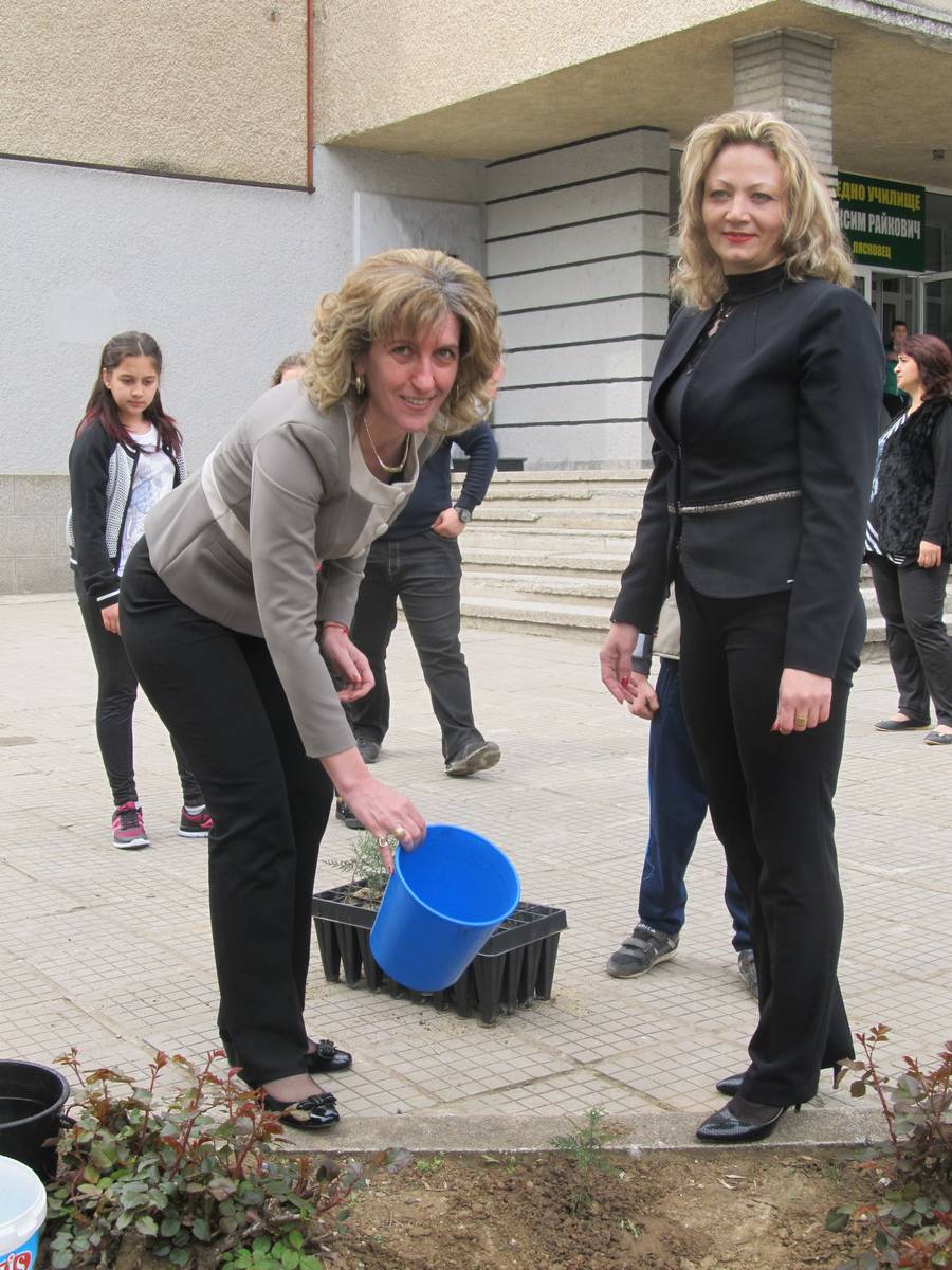 По време на кампанията по даряването на посадъчен материал за жителите на Лясковец, на място беше и директорът на териториално поделение на държавното горско стопанство Горна Оряховица инж. Мирена Татарджийска. Тя разпредели и 40 дръвчета да бъдат дадени на лясковското училище „Максим Райкович”, които бяха засадени още същия ден в двора на корпус І на училището. Директорът на гимназията Даниела Арабаджиева, Татарджийска и колеги от горското стопанство помогнаха на децата в залесяването. Гостенката първо поздрави децата, разказа им от кога датира празника и апелира за опазване на горите. После третокласници и четвъртокласници, с помощта на служители на горското стопанство, директорките и учители, положиха дръвчетата в дворното пространство на своето школо. Децата поляха новозасадените туи и дъбове и обещаха на дарителите и своите учители в бъдеще добре да се грижат за тях, за да пораснат големи и да им дават чист въздух.