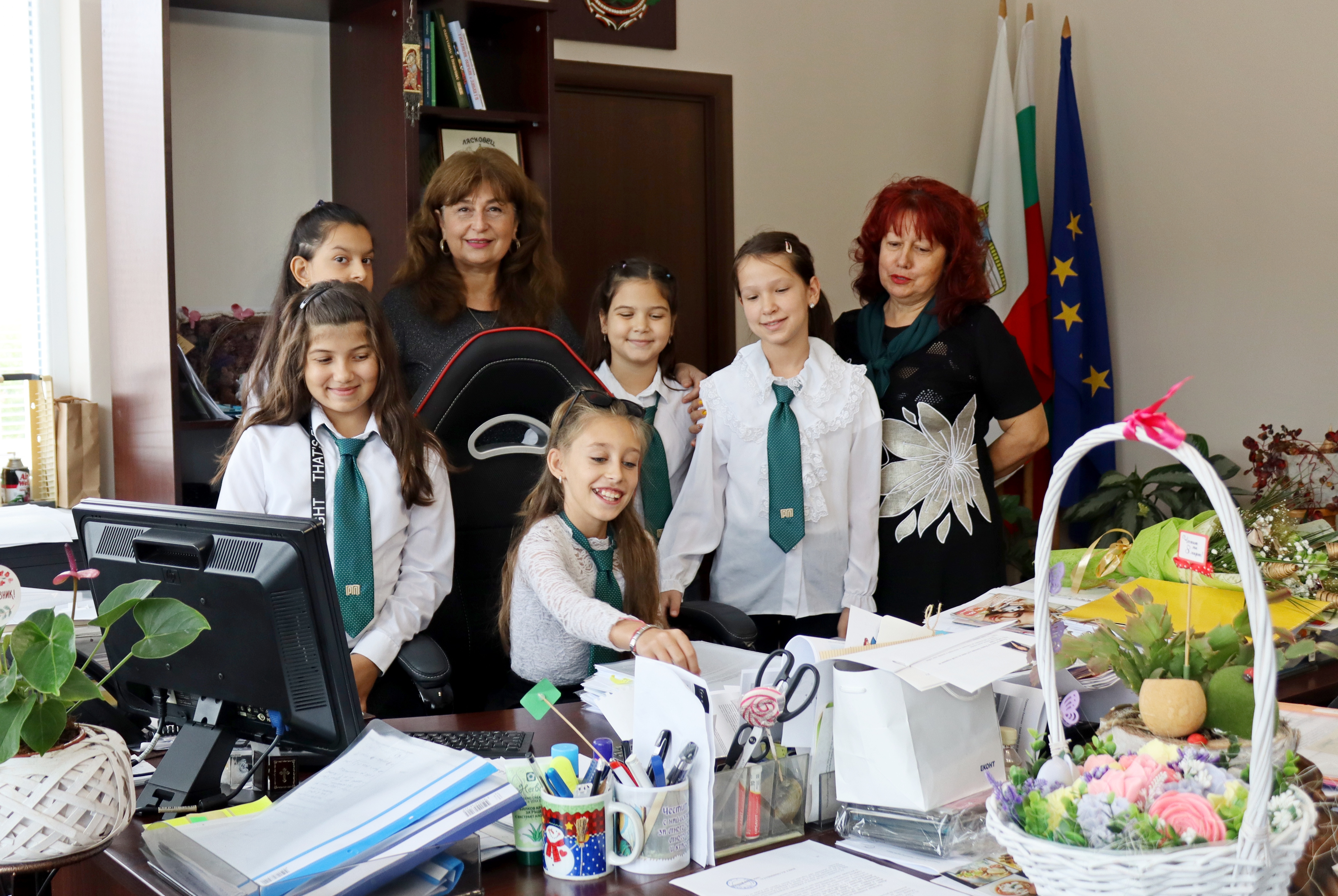 Децата се запознаха и с председателя на Общинския съвет Георги Петров, който също ги посрещна в кабинета си и отговаря на всичките им въпроси. Две ученички заявиха желанието си да заемат най-важните кресла – тези на общинското ръководство. Неджля Мустафова беше в празничния ден председател на Общинския съвет, а Мишел Върбанова седна в кметското кресло. Заедно с двамата представители на местната власт те решаваха текущи задачи за деня и четоха и разписаха най-спешните документи.