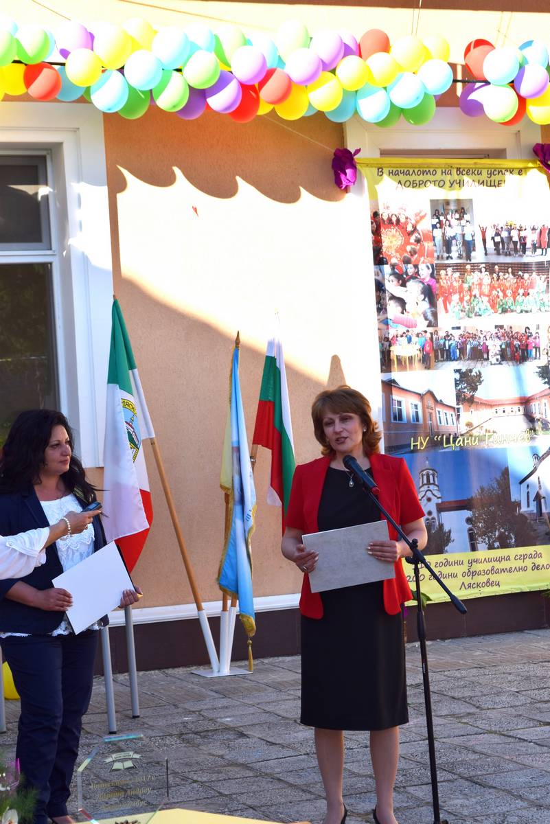 Областният управител проф. д-р  Любомира Попова и нейният заместник инж. Детелина Борисова уважиха тържеството на най-старото училище в Лясковец – НУ “Цани Гинчев”. Поводът бе честването на 200 години образователно дело в Лясковец и 110 години от построяването на училищната сграда.