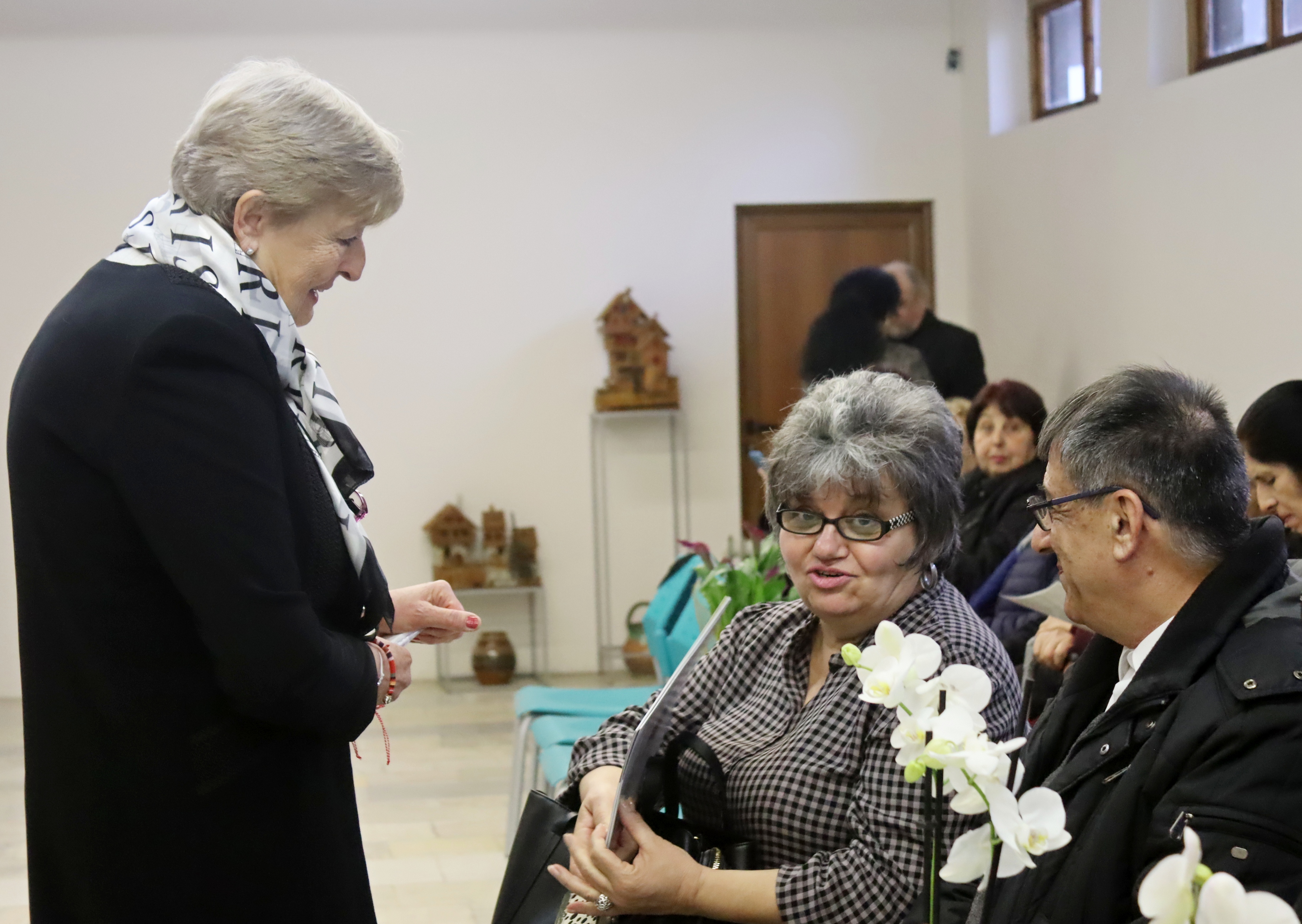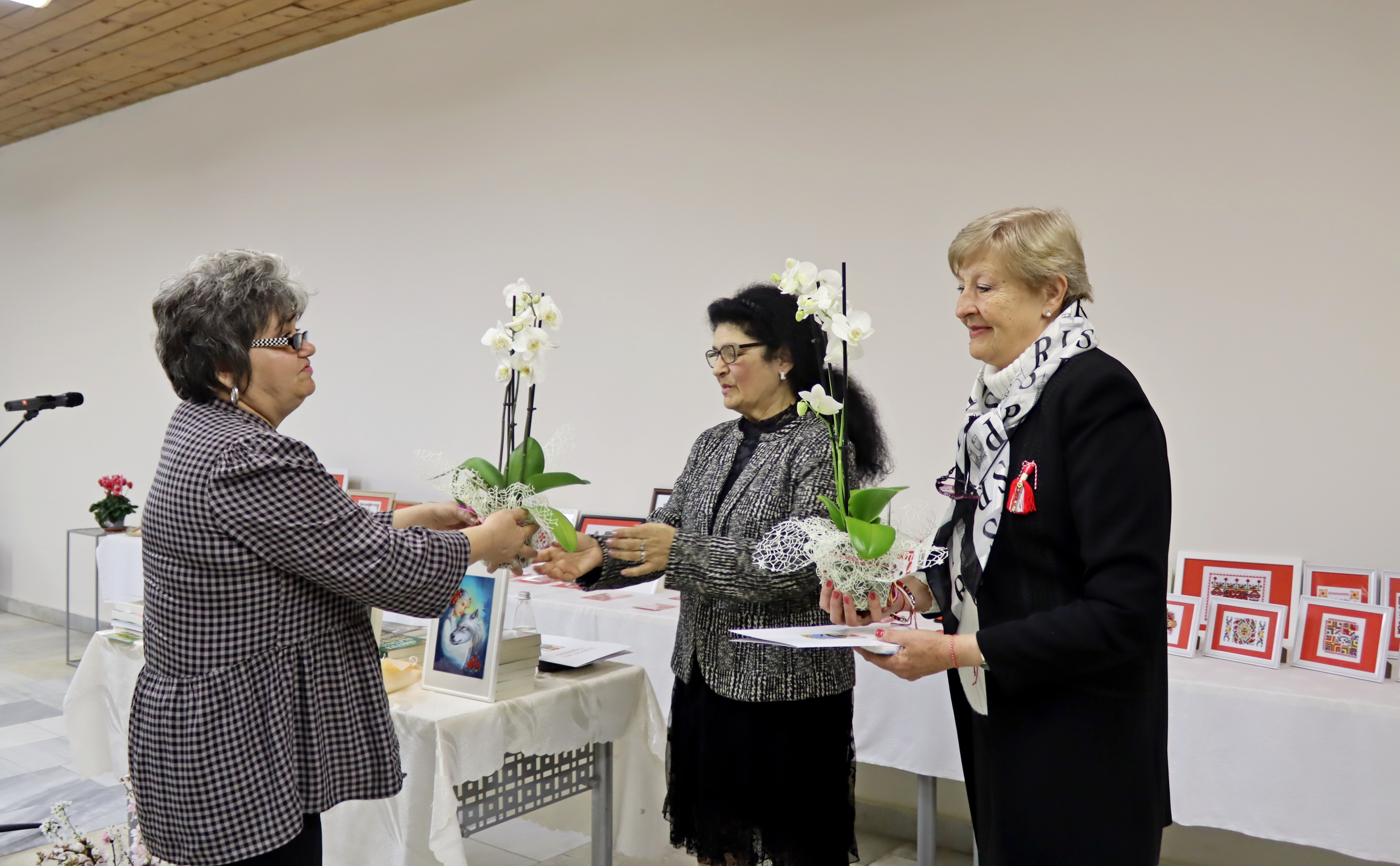 Гости на представянето на книгите и изложбата бяха заместник-кметът Емилия Жилиева, общински съветници, читалищни дейци, библиотекари, граждани – почитатели на бродериите и шевиците, на българското. В края на творческата вечер горнооряховската писателка и лясковската майсторка на шевици бяха поздравени от заместник-кмета. Те получиха поздравителни адреси от името на кмета Васил Христов, получиха цветя и благодарности за това, че докоснаха присъстващите до българското, до корените, до красотата и трудолюбието на българката и до родните традиции. Поздравления получиха и от представители на лясковското читалище и от читалището в Шереметя. За доброто настроение на всички музикален поздрав поднесоха певиците от ВГ „Нежни сърца“, при читалище „Пробуда“, с. Шереметя, чийто художествен ръководител е писателката Веселина Кожухарова, а техен корепетитор е Стефан Митев.
