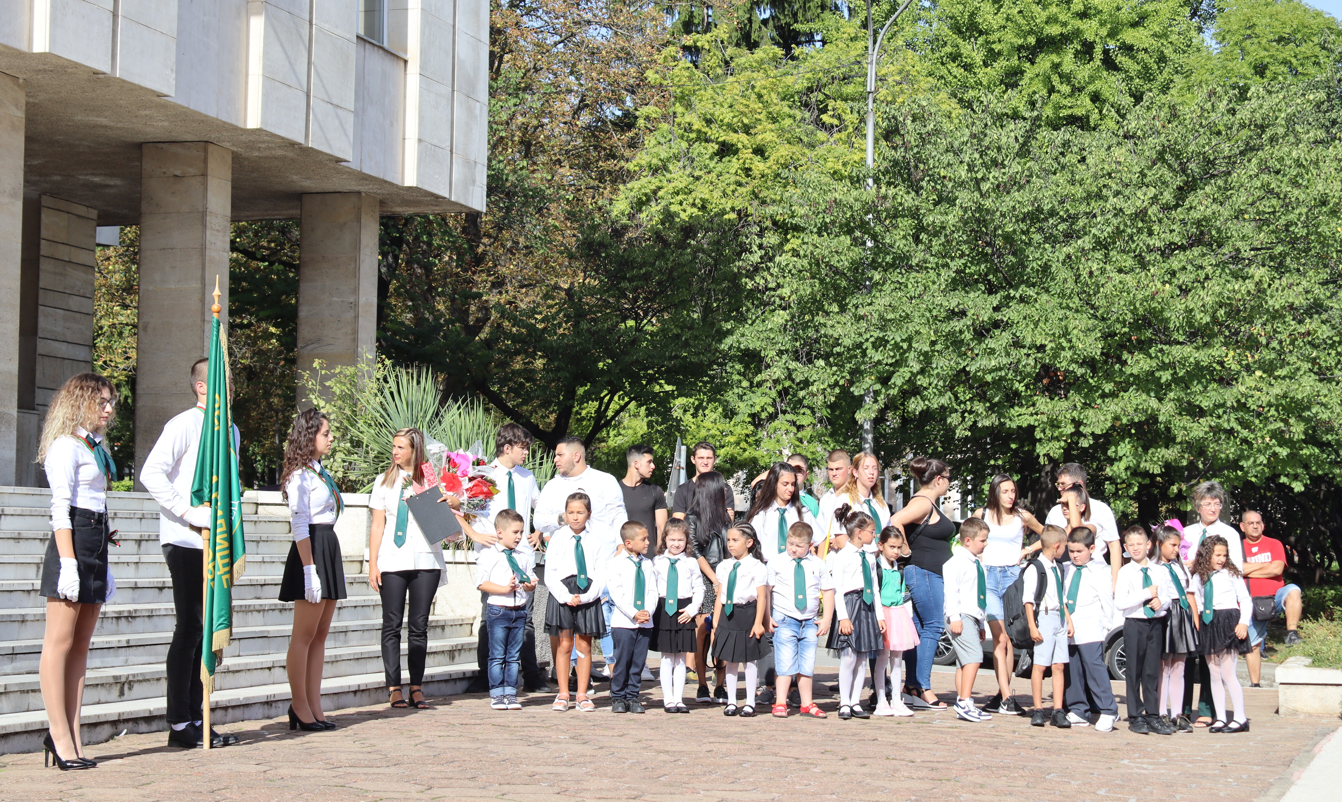С издигане на националния флаг, с внасяне знамето на училището, с приветствия, химни и славене името на патроните на училищата, със стихове за Родината и родното школо, започна традиционната церемония по откриването на учебната година в училищата.
