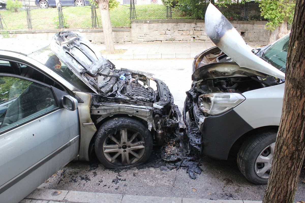 Два автомобила изгоряха тази сутрин на ул. “Цанко Церковски” във Велико Търново срещу Професионалната гимназия по туризъм “Д-р Васил Берон”. Сигнал за инцидента е подаден в 07.05 часа, съобщиха от полицията. Напълно изгорял е двигателят на единия от тях – рено “Меган”. От реното огънят се е прехвърлил и на паркираната срещу него товарна дачия, собственост на фирма за ел. табла, която също е със сериозно обгоряла предница.