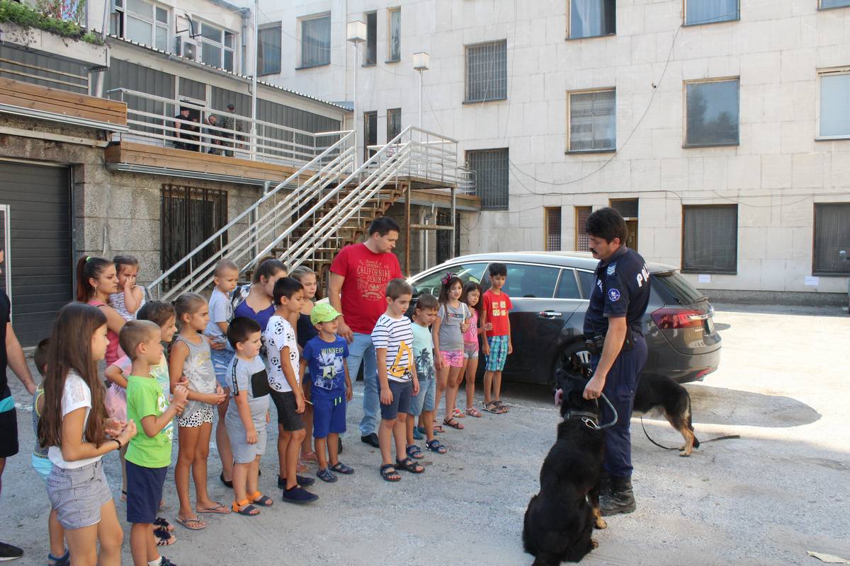 Деца от детска занималня във В. Търново и техните възпитатели посетиха Областната дирекция на МВР. Малчуганите се запознаха отблизо с оборудването в полицейски патрулен автомобил, но не успяха дълго да му се радват, тъй като екипът бе изпратен на сигнал. Кратката среща със служителите от Пътна полиция бе компенсирана от появата на четириногите им колеги и техните водачи. В началото децата ги гледаха доста плахо, но след като се увериха колко добре са обучени и дисциплинирани, не искаха да ги пуснат да си тръгнат.