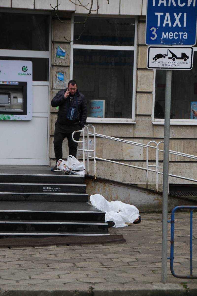 Мъж лежи в безпомощно състояние на входа на градската поликлиника. За това сигнализираха в редакцията на “Янтра ДНЕС” притеснени минувачи. Когато екипът ни пристигна на място, тялото на човека, паднал до стълбите на ДКЦ, беше покрито с бял чаршаф. На място имаше служители на полицията и линейка, който откара тялото на починалия мъж.