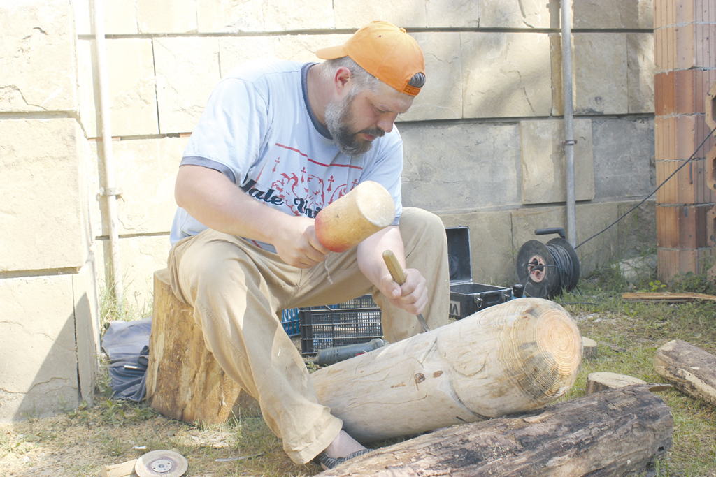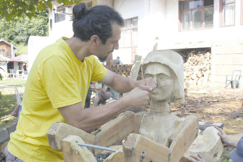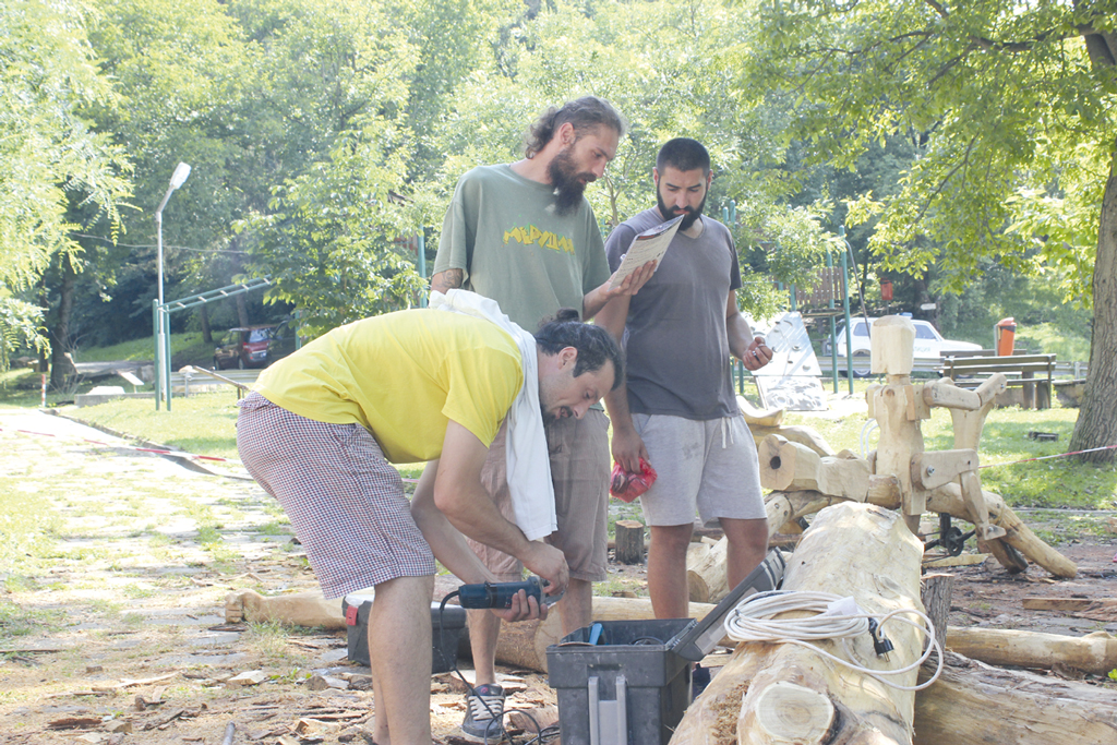 Петър Кондев се бе вглъбил в изработването на куклите-антигерои. Проектът е изцяло негов, но го реализира с помощта на по-младите си колеги. Наполовина е готов, но предстои още малко работа, за да завърши и останалите фигури. Те наподобяват кегли и се събарят с топка. Всяка една от тях има собствен образ и характер. Студентът следва магистратура по скулптура във ВТУ, а сега за първи път участва във форума. Споделя, че следващата година отново би се включил в симпозиума, стига да го поканят. “Тук ми харесва много, атмосферата е страхотна”, усмихва се Петър. Скулпторът сподели, че няма проблем при работата си с дървото. За него е приятно, понеже е органичен материал и се обработва сравнително лесно с подходящите инструменти.