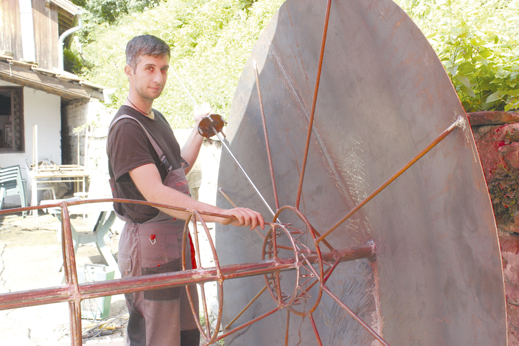 Друг неин колега изработва въртящата се беседка, в която ще има вградена библиотека. Той работи както с дърво, така и с метал. Казва, че с метала му е по-лесно, тъй като там грешките може да се поправят с една проста заварка, докато с дървото не е така. Той вече е готов с въртящия механизъм и го изпробваше, преди да продължи с работата си по дървената част.