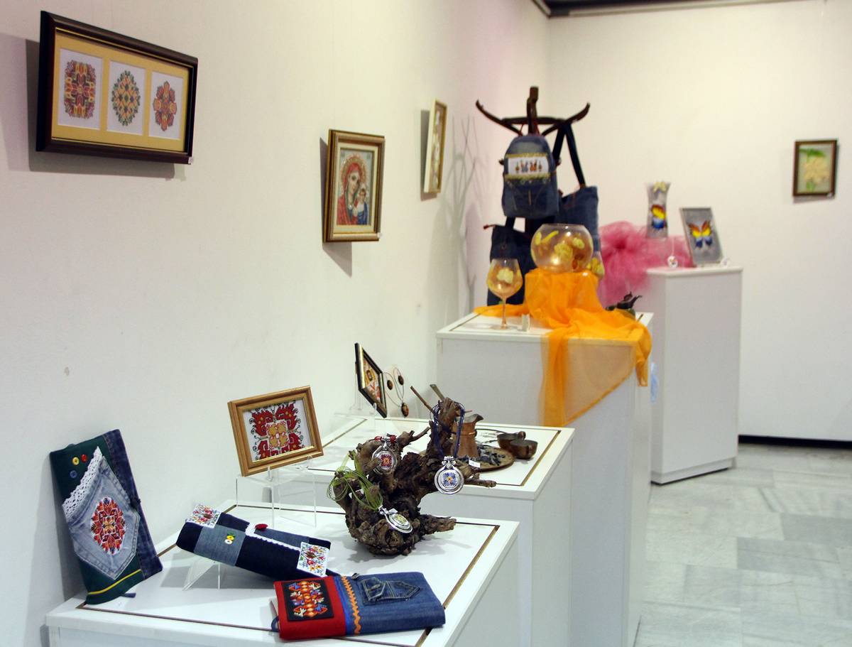 Идеята да се съберат в едно бродирани бижута и аксесоари с рисувано  стъкло е възникнала съвсем спонтанно, разказа Мила. Двете дами се познават отдавна, знаят за хобито си, което на пръв поглед да е доста различно, но ги обединява красотата. Снежана започва да рисува мотивите от шевиците на Мила, тя пък претворява с конец нейните рисунки. Така двете решават да направят изложба и да покажат самобитното си занимание на другите. Наричат я „Стъкло и конец“. Тандемът е аранжирал своите „рожби“ тематично, дори интимно, по женски, а между бижутата и рисуваното стъкло има общи фигури, детайли, форми и цветове.  Всеки експонат излъчва позитивна енергия и дух, красота, всичко е направено с много любов и вдъхновение, твърдият авторките. Търсено е още намигването, че Снежана и Мила не се взимат на сериозно и не претендират да са истински художници. “Слънчевата невеста“ например с българската шевица дори е със скъсани дънки. Защо пък не, показа авторката.