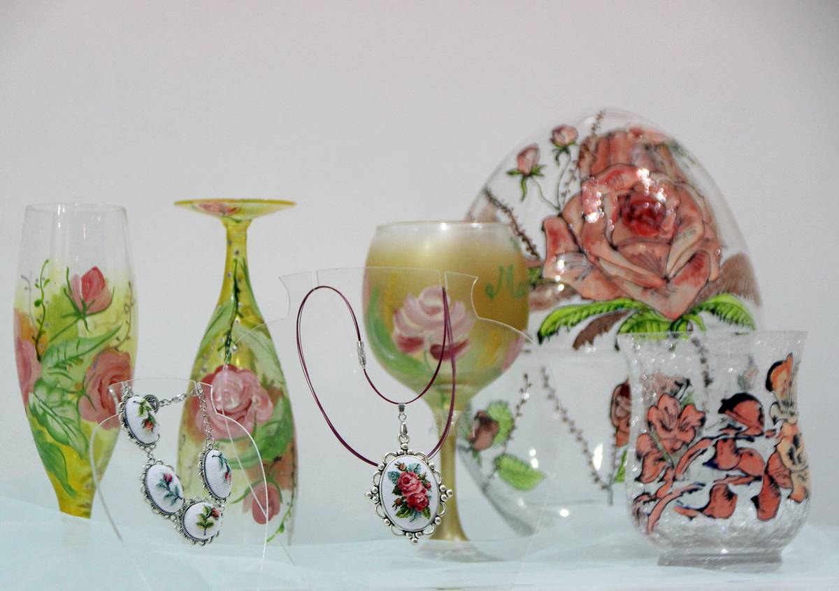 Хобито на Снежана е отдавна. Стъклописът е нейният релакс, харесва да се занимава с него и много є допада, признава тя. Започнала със стари бутилки, но днес вече работи и с други форми като прилага няколко техники. Интернет е нейният учител, но влага и собствен поглед в рисуването, което всъщност доста є се отдава, макар по професия да е икономист. Любимите є сюжети са цветята и това е подчертано почти във всеки експонат. Друг оригинален детайл са шипките, затова присъства серията „Приказки под шипковия храст“.
