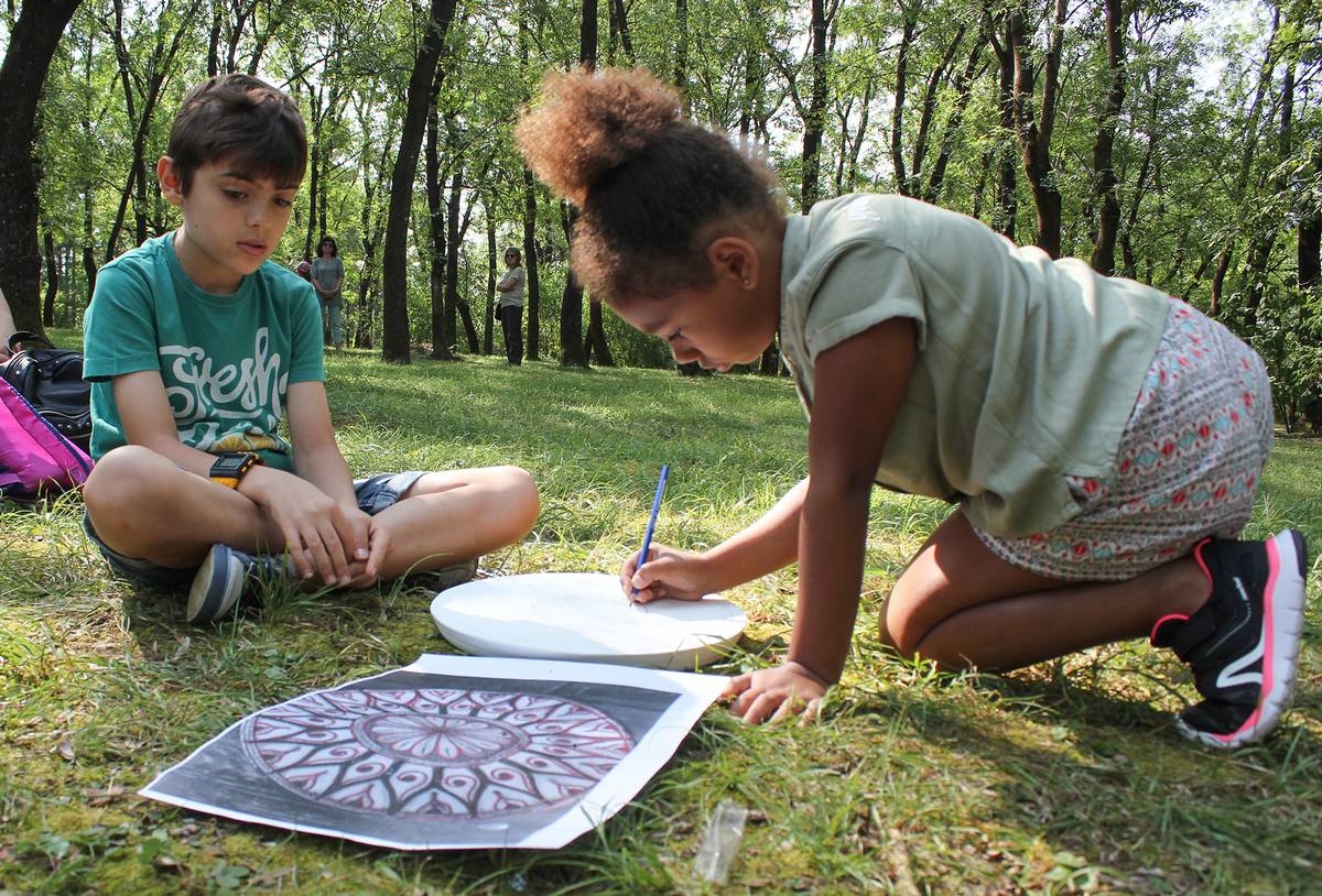Около 20 деца на възраст от 5 до 15 г. превърнаха парк “Света гора” в огромно ателие на изкуството. В своеобразен пърформънс, част от проекта „Отражения – претворено наследство – търновска сграфито керамика”, те се опитаха на големи гипсови рингове да рисуват символите на керамиката, характерна за Второто българско царство.