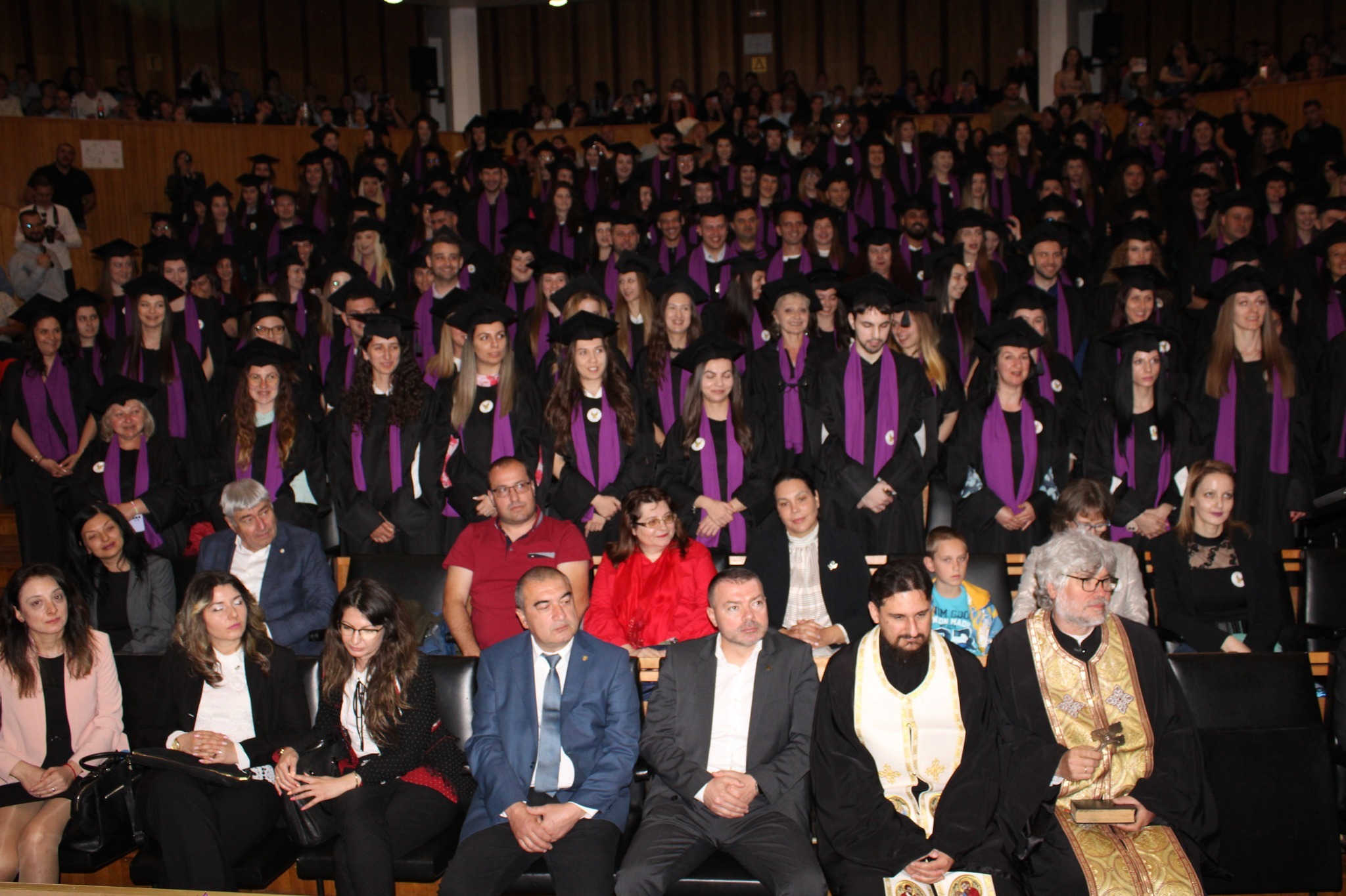 На тържествената церемония присъстваха още: зам.-деканът доц. д-р Даниела Йорданова, преподаватели, отец Михаил Хаджиев, отец Славчо Иванов, който благослови випуска, и др.