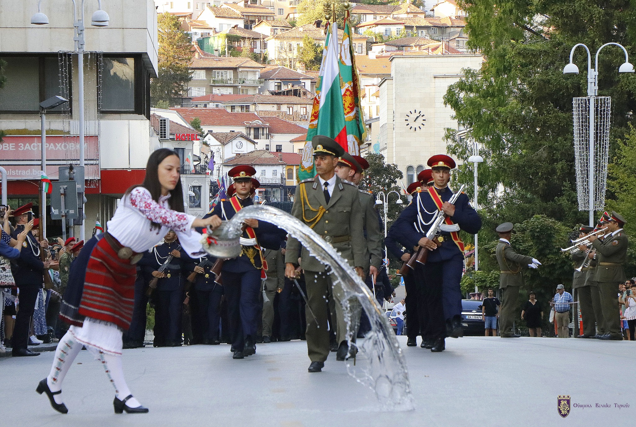 Пред присъстващите беше прочетен и поздравителен адрес от президента на България Румен Радев. Няколко от висшите офицери на Българската армия лично връчиха новите офицериски и сержантски пагони в ръцете на випускниците. Накрая новопроизведените офицери и сежанти преминаха в тържествен строеви марш пред официалните гости и присъстващите стотици гости в центъра на Велико Търново. А за да им върви и да им бъде лека службата, момиче, облечено в българска народна носия, плисна пред маршируващите випускници менче с вода. След официалната част в центъра на старата столица, в района на Военния университет бе изнесена празнична програма.