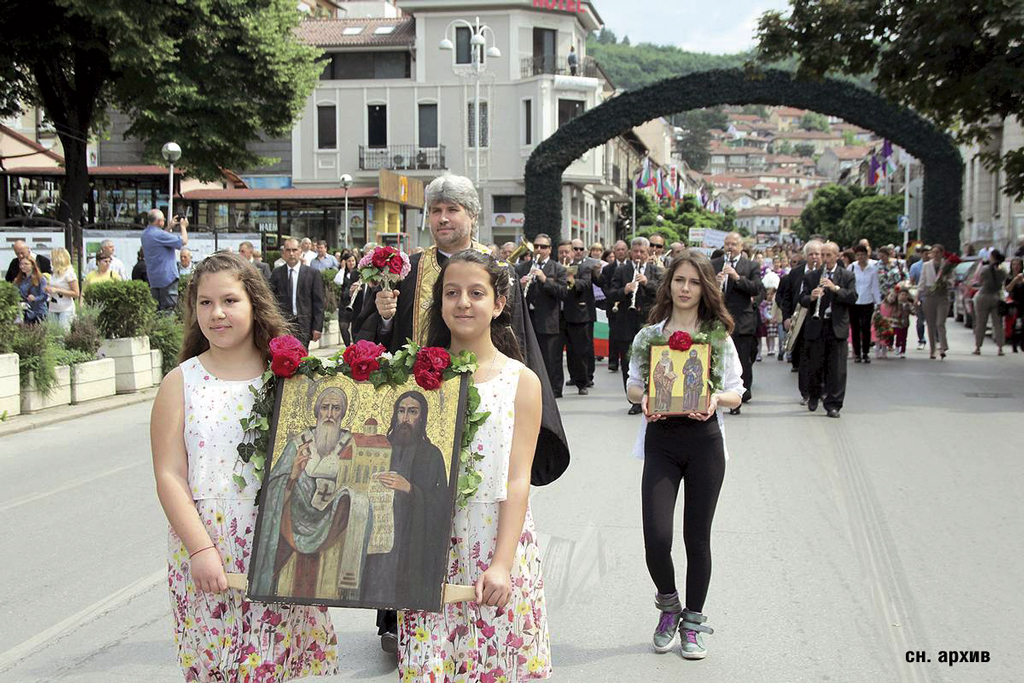През 1892 г., известният сатирик, културен и обществен деец Стоян Н. Михайловски написва в памет на първоучителите стихотворението “Кирил и Методий”, чийто текст става основа за популярния химн на славянската писменост “Върви, народе възродени”. През септември 1900 г., младият пловдивски музикант Панайот Х. Пипков, назначен за учител по музика в Ловешкото петокласно училище, написва мелодията на химна “Върви народе възродени”. “Малко преди 11 май, стар стил, 1900 – 1901 учебна година имах час по пеене в един от трите класове на Ловешкото петокласно училище – разказва 40 г. по-късно Пипков на страниците на сп. “Родна песен”. Един от учениците се бе навел над някакъв учебник и четеше с увлечение напечатаното в него стихотворение за Кирил и Методий от нашия мислител и поет Стоян Михайловски. Понеже търсех текст, надвесих се и аз да прочета непознатото за мене стихотворение. Още неприполвил бисерните му стихове, в главата ми вече прозвуча вдъхновена от тях музика. Пред черната дъска се мъдреха тебеширени късчета. В бързината, с която започнах да чертая петолинието, тези дребни късчета се топяха между пръстите ми или се пръскаха на вси страни, обръщайки се на прах. Написването на музиката на четири гласа не трая повече от 15 минути. Имах на разположение още 30 минути – време достатъчно да разуча песента поотделно и да я опитам дружно. След първото ѝ изпяване хорово удари звънецът. Но учениците, мнозина от които бяха и певци в ръководения от мен ученически хор, станаха прави и ме помолиха да прекараме междучасието в няколкократно изпяване на новата песен. Те дори не изчакаха моя отговор, а запяха с такава сила на прелели от възторг детски гласове, че целият шум от настъпилото междучасие заглъхна. Учители и ученици се трупаха пред вратата на класа, за да слушат каквото не бяха чули до тоя ден. На излизане ме посрещна директорът на училището Бръмбаров и стискайки ръка ми каза: “Господин Пипков, никога не съм се надявал, че в това наше скромно петокласно училище ще се пеят такива хубави песни”. Замоли ме да изпея новата песен на молебена, който ще се състои по случай празника на Кирил и Методий. “Този химн – продължи Бръмбаров, истински възвеличава делото на нашите просветители. Няма да мине много време и той ще прозвучи във всички големи и малки училища на нашето отечество.” Пророческите му слова се сбъднаха. След въвеждането на Григорианския календар през 1916 г. честването на празника на Кирил и Методий се измества от 11 на 24 май, а поотделно паметта на всеки от братята се отбелязва в деня на смъртта му – на 14 февруари на св. Кирил, а на 6 април на св. Методий. Днес празникът на светите братя е официален празник и в република Македония. Той се отбелязва също в Русия, Чехия и други славянски страни. Днес имаме два празника, посветени на Кирил и Методий, тъй като през 1969 г. църквата отново въведе Юлианския календар. 11 май се празнува като църковен празник на преподобните Кирил и Методий, канонизирани като светци, а 24 май се чества като светски празник – Ден на славянската писменост, българската просвета и култура.