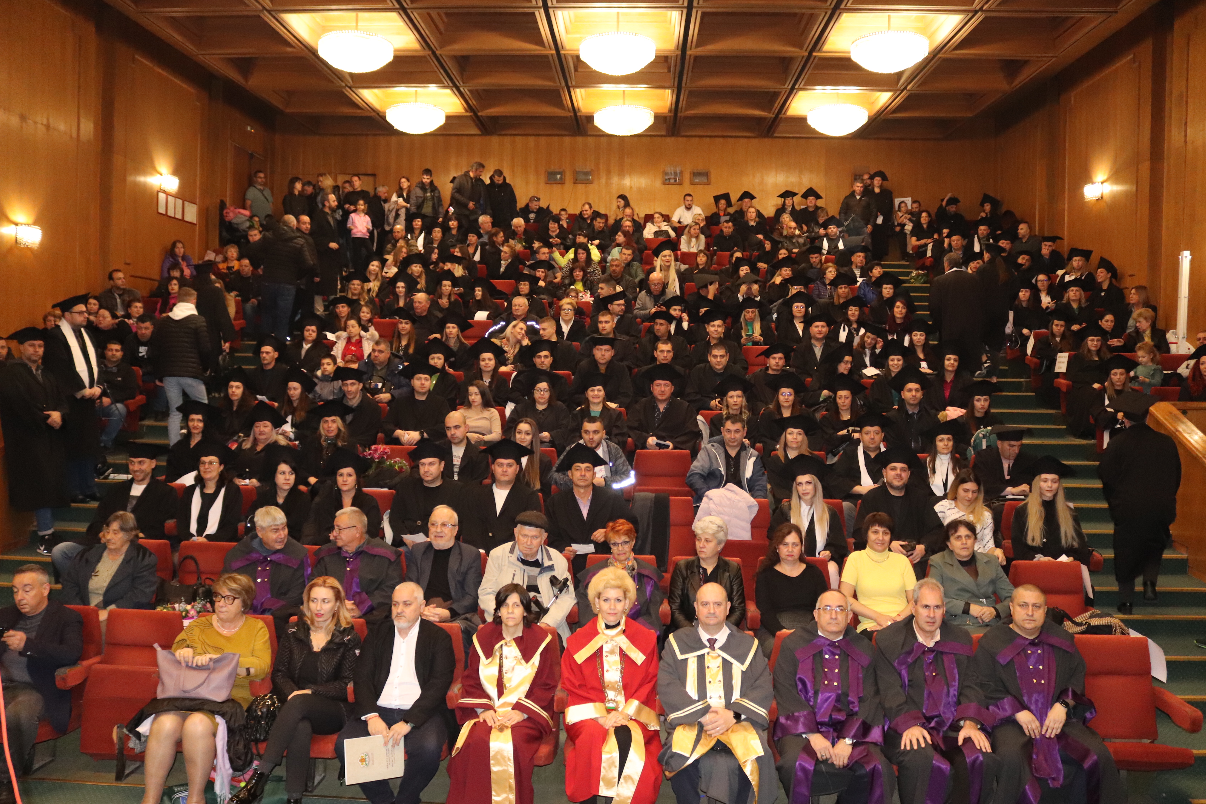 261 абсолвенти от филиала на Висшето училище по агробизнес и развитие на регионите във В. Търново получиха своите дипломи на тържествена церемония. Тя се проведе в голямата зала на Общината в старата столица, която се оказа тясна за възпитаниците на вуза, преподавателите и гостите на празника, който отбеляза и 21-ата годишнина от основаването на подразделението в болярския град.