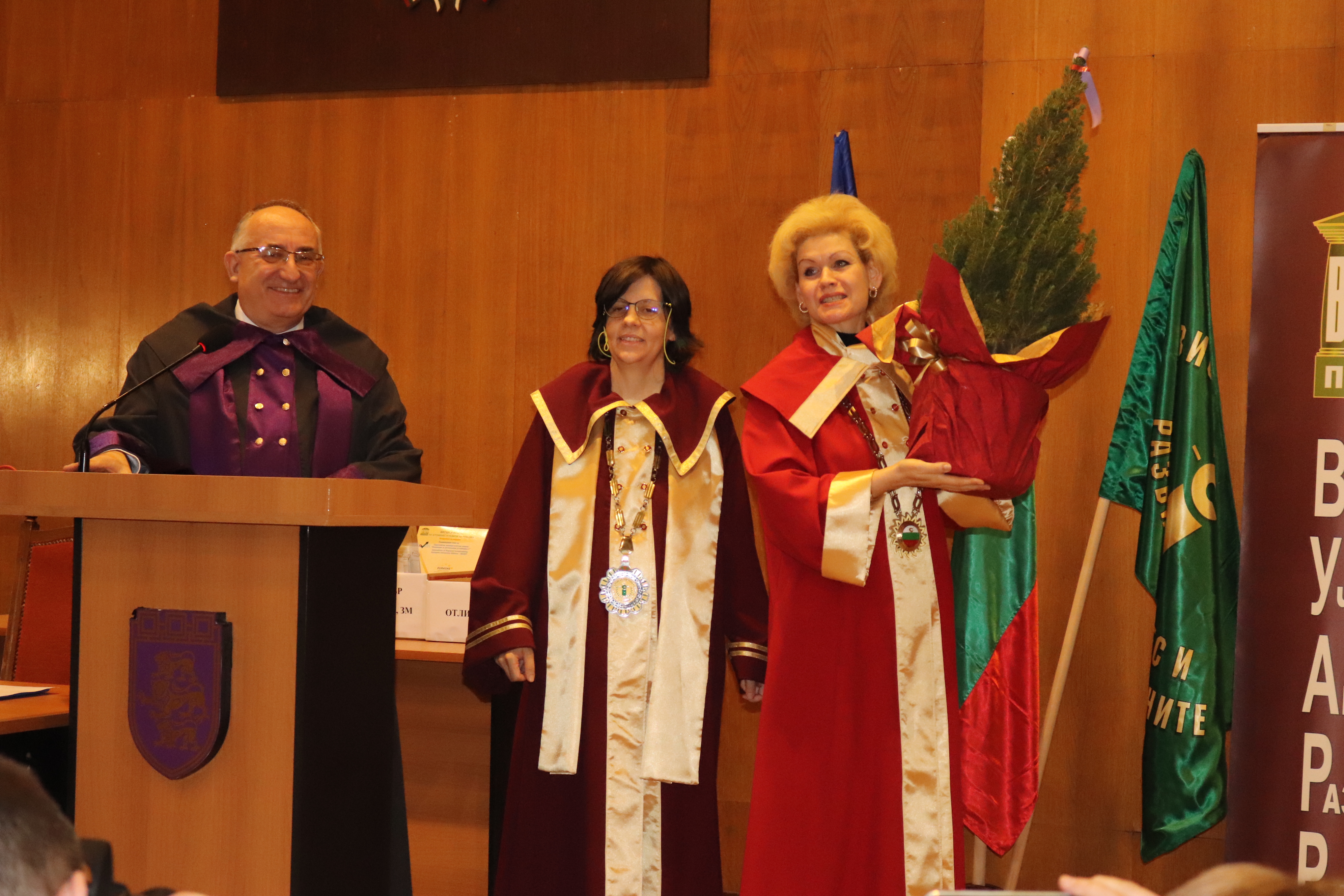 След церемонията кметът Панов и доц. Димитрова подписаха споразумение за сътрудничество между Община Велико Търново и висшето учебно заведение. То има за цел обединяване на усилията както за по-добрата връзка между местна власт, образование и бизнес, така и за създаване на все по-добри условия за реализация на висшистите във В. Търново и региона.