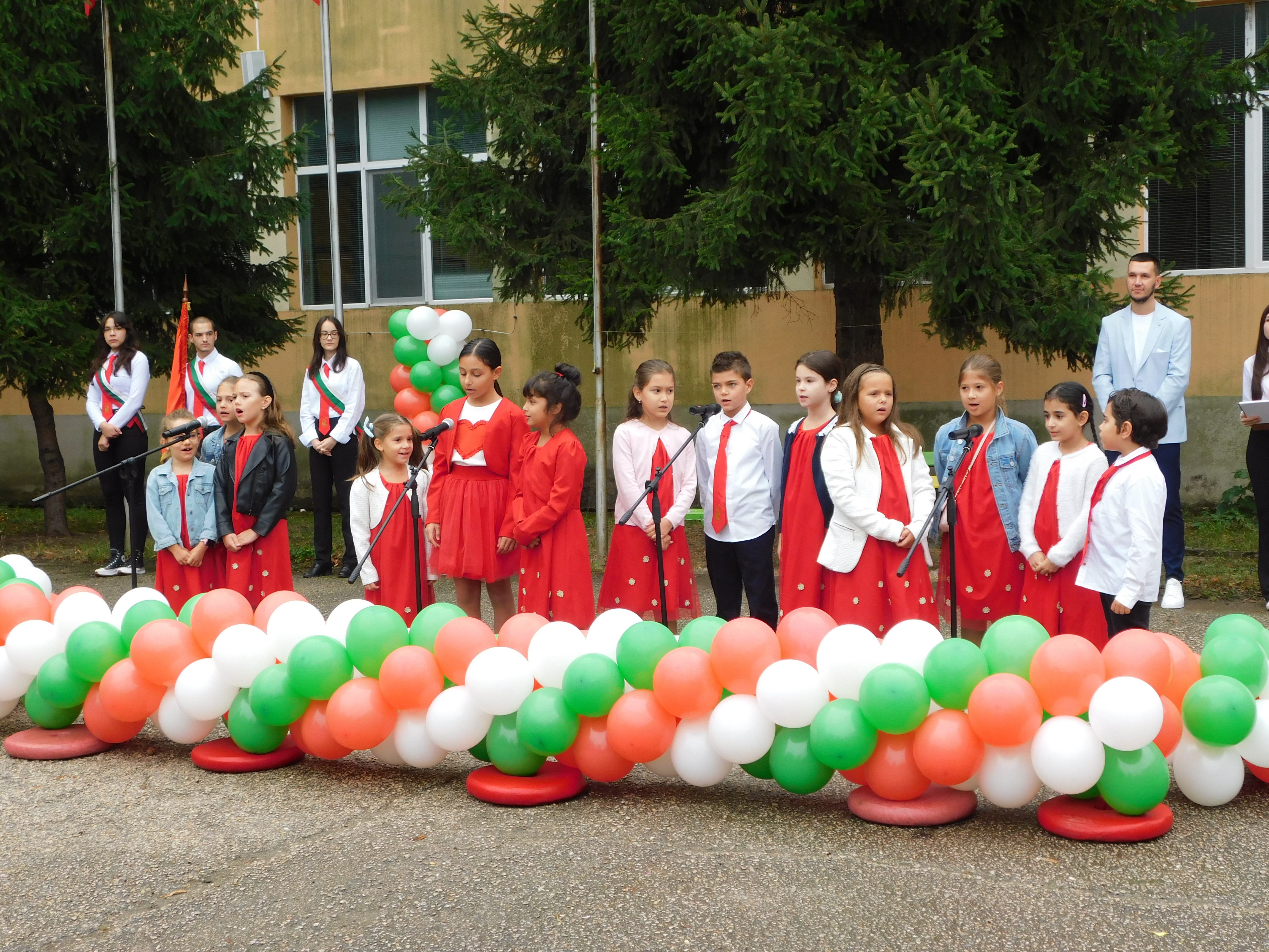 Тържеството по повод на първия учебен ден започна с вдигането на националния фланг под звуците на българския химн, свирен от „Джуниър бенд“, както и внасянето на училищното знаме.
