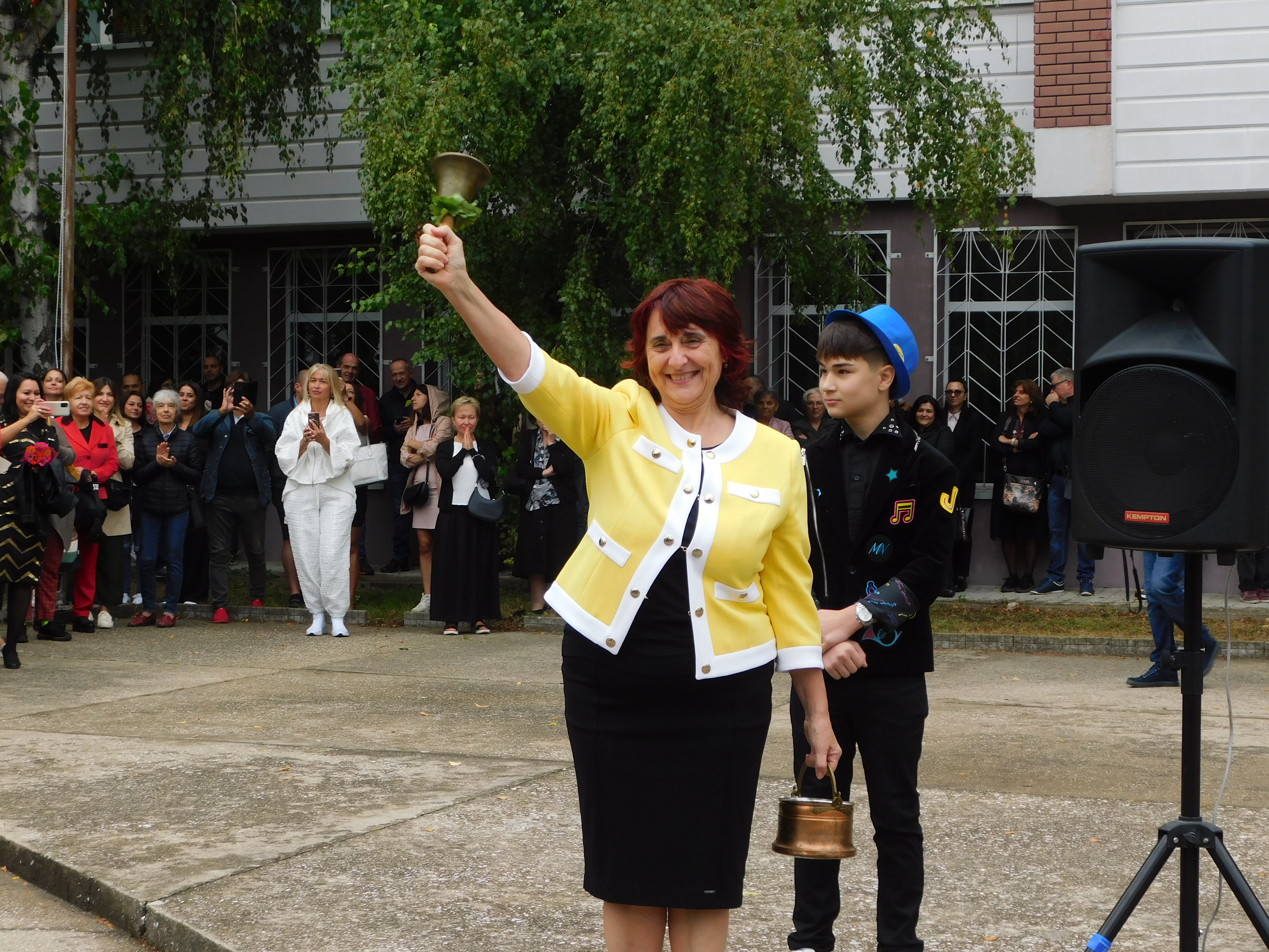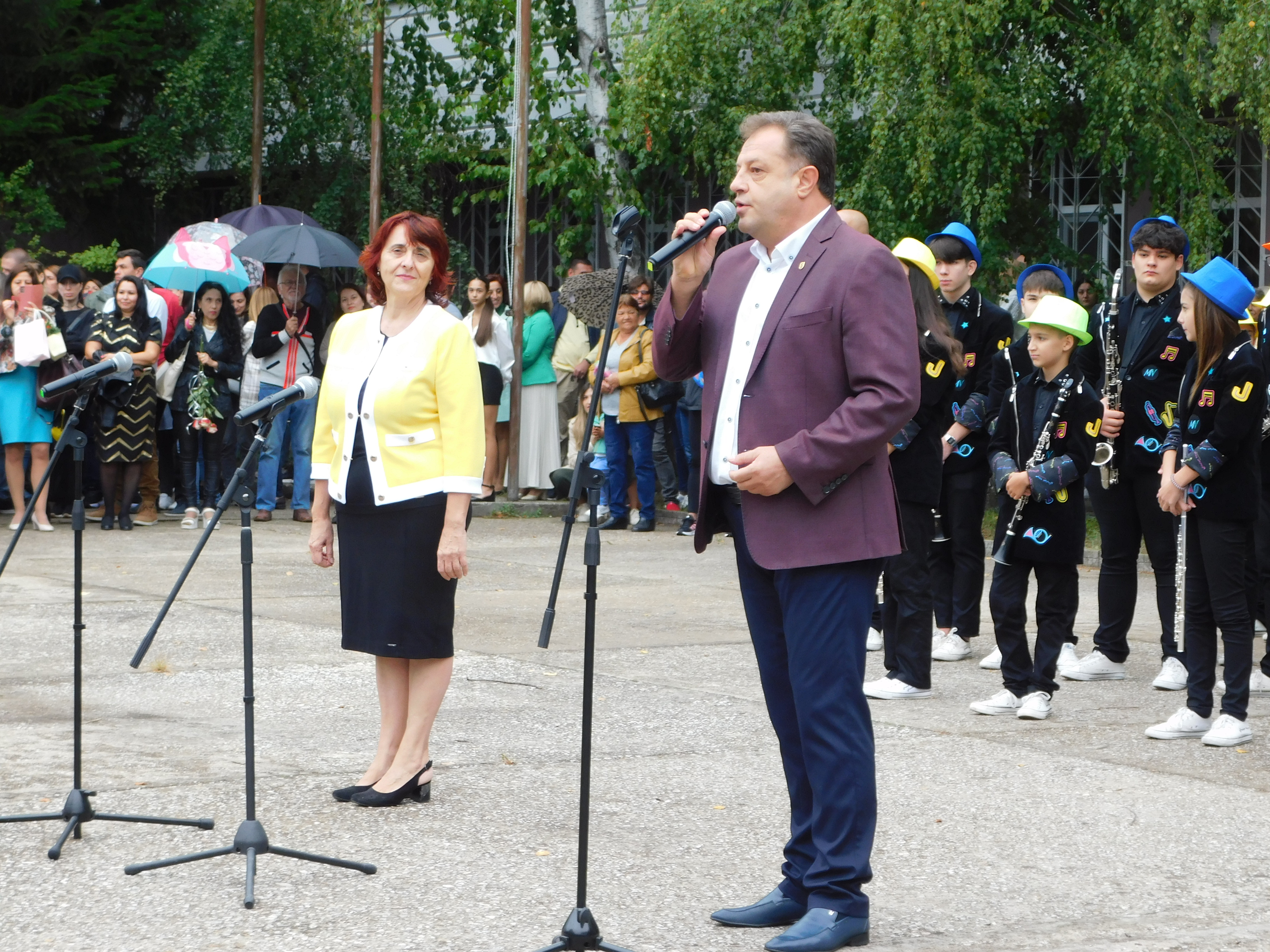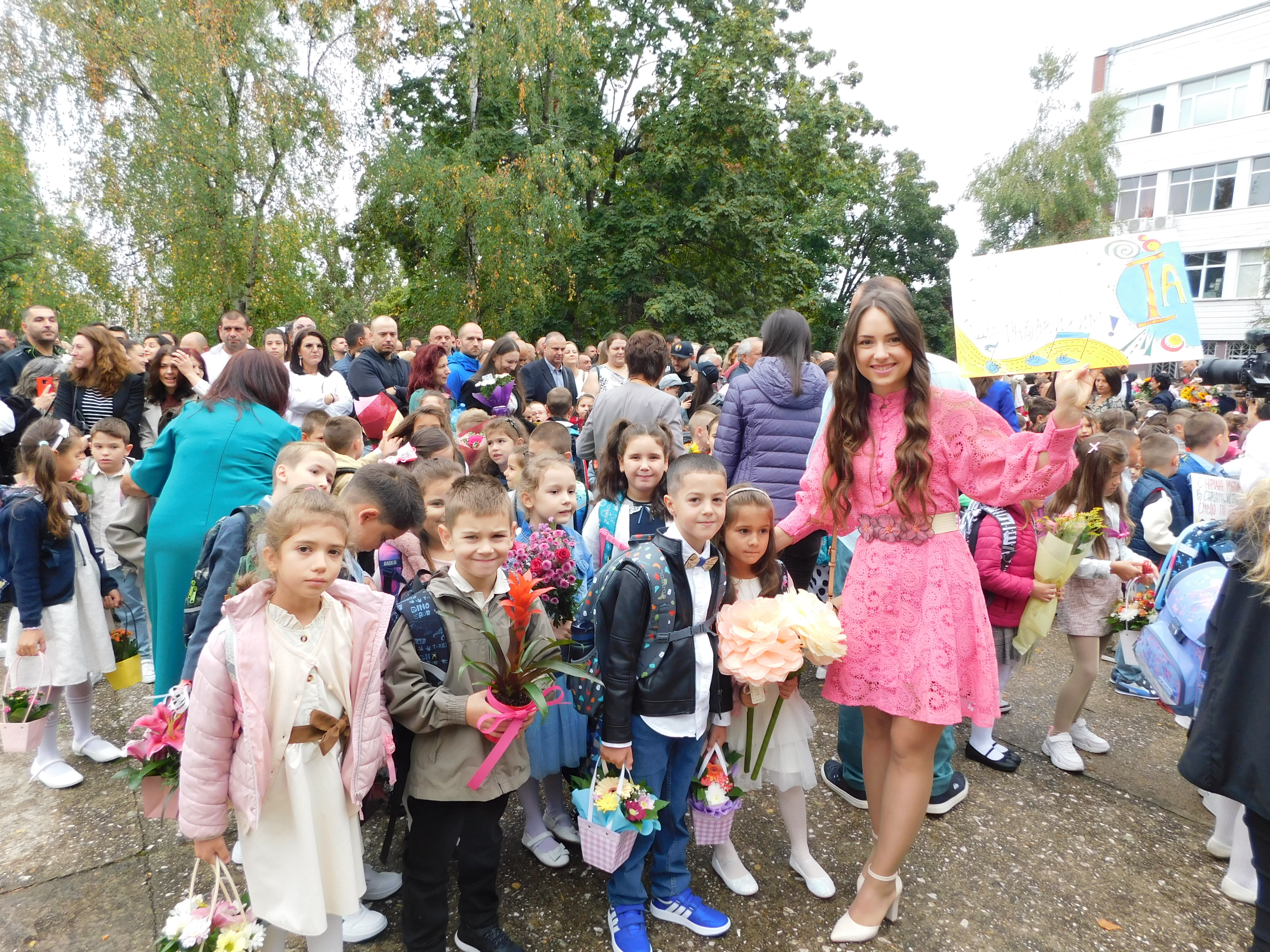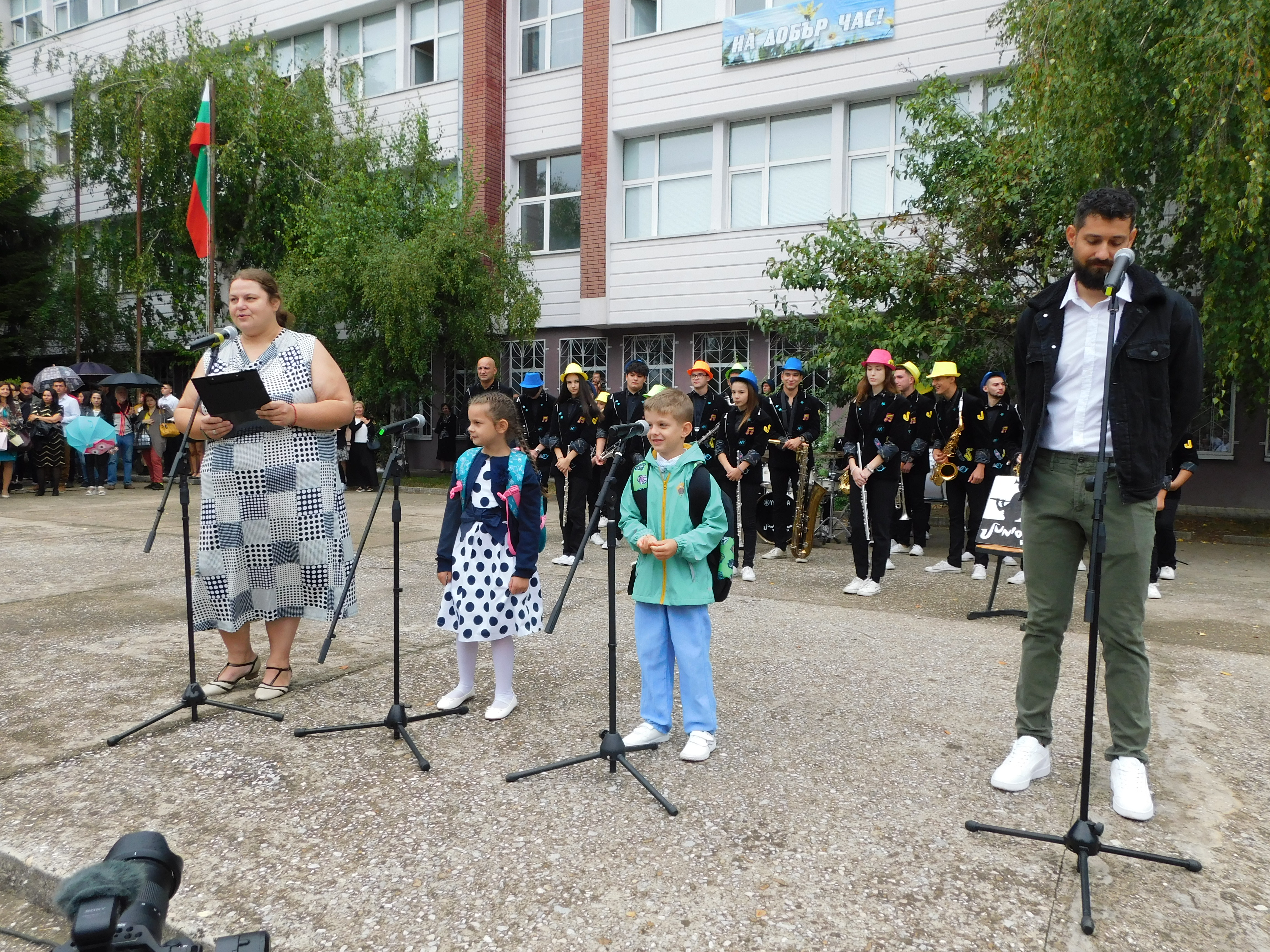 „Пожелавам на всички да бъдете много здрави, старателни и ентусиазмът да не угасва в очите нито на малките, нито на големите“, обърна се към всички в препълнения с ученици, родители и учители двор директорът на СУ „Емилиян Станев“ Кина Котларска.