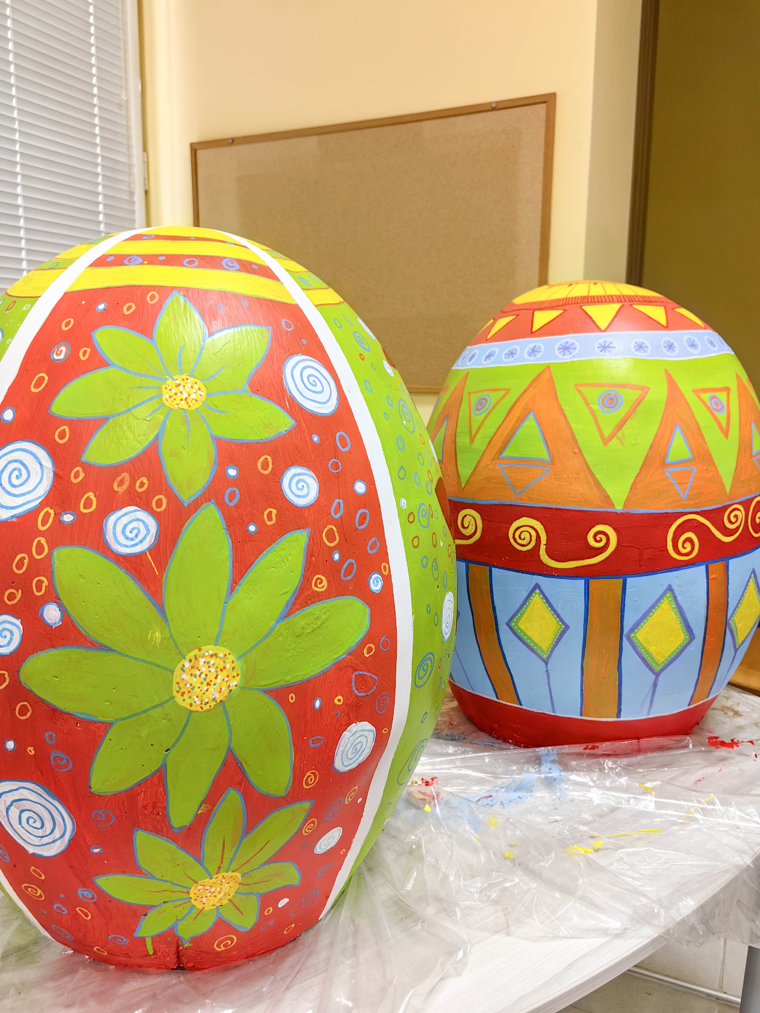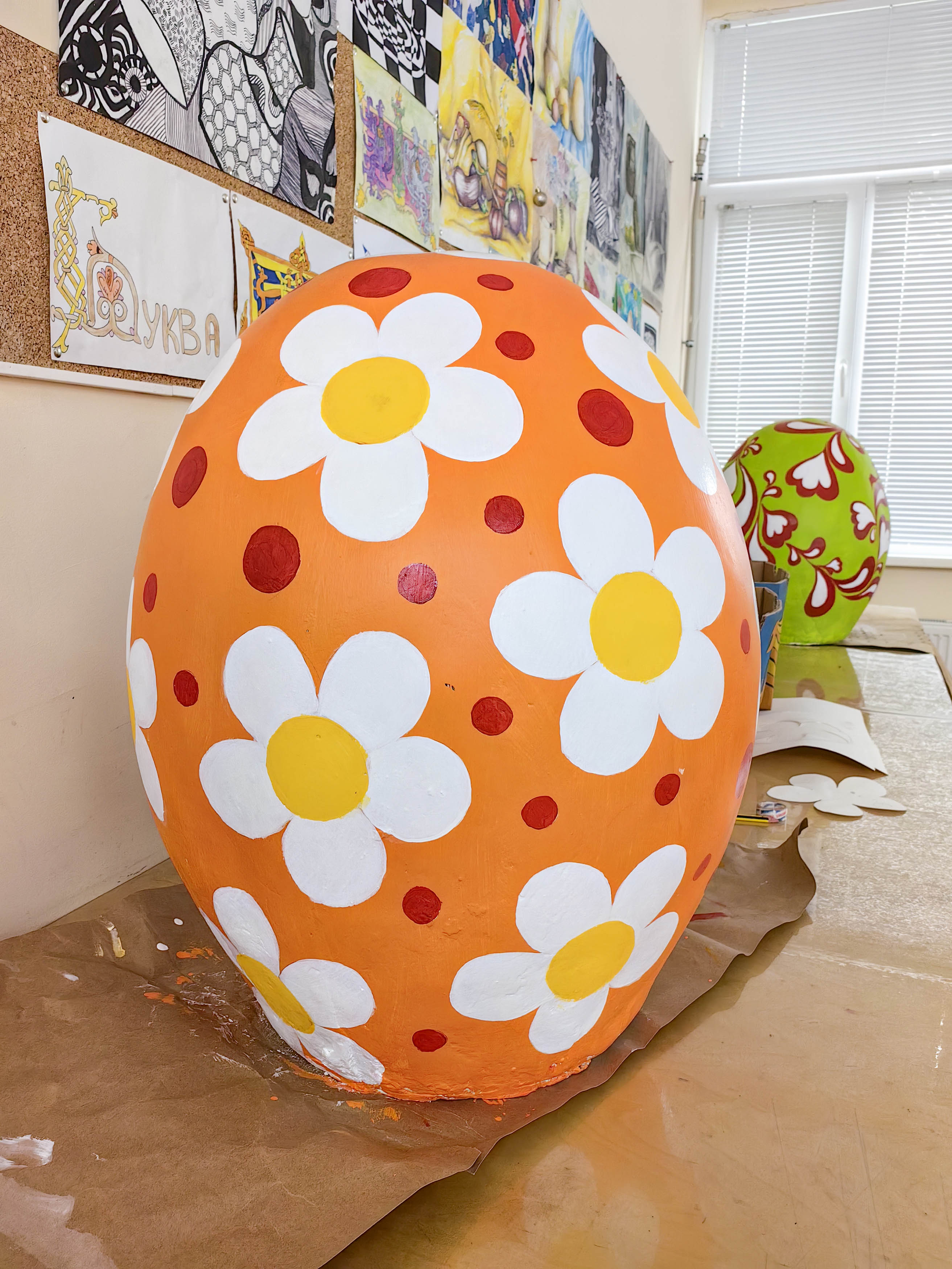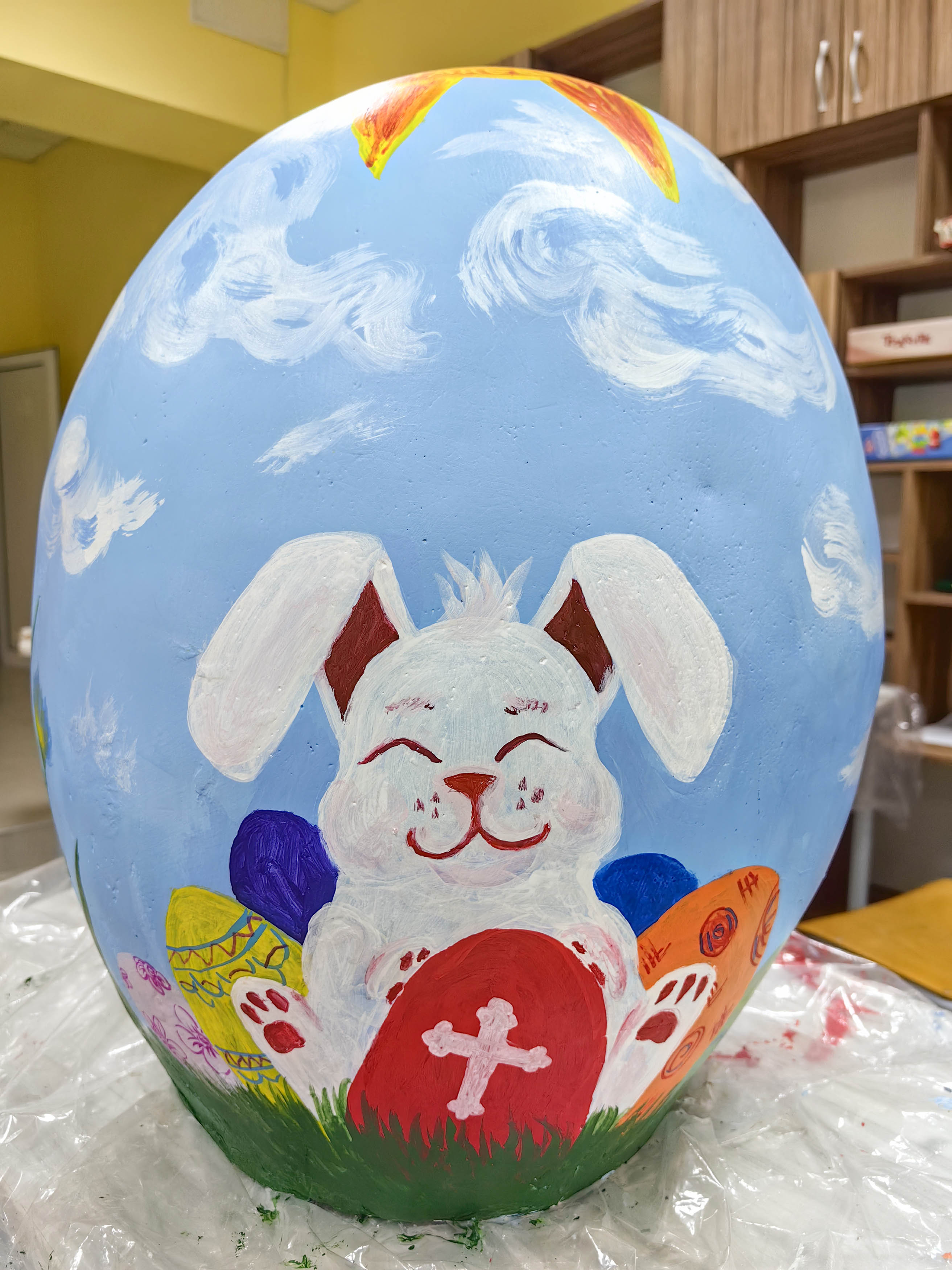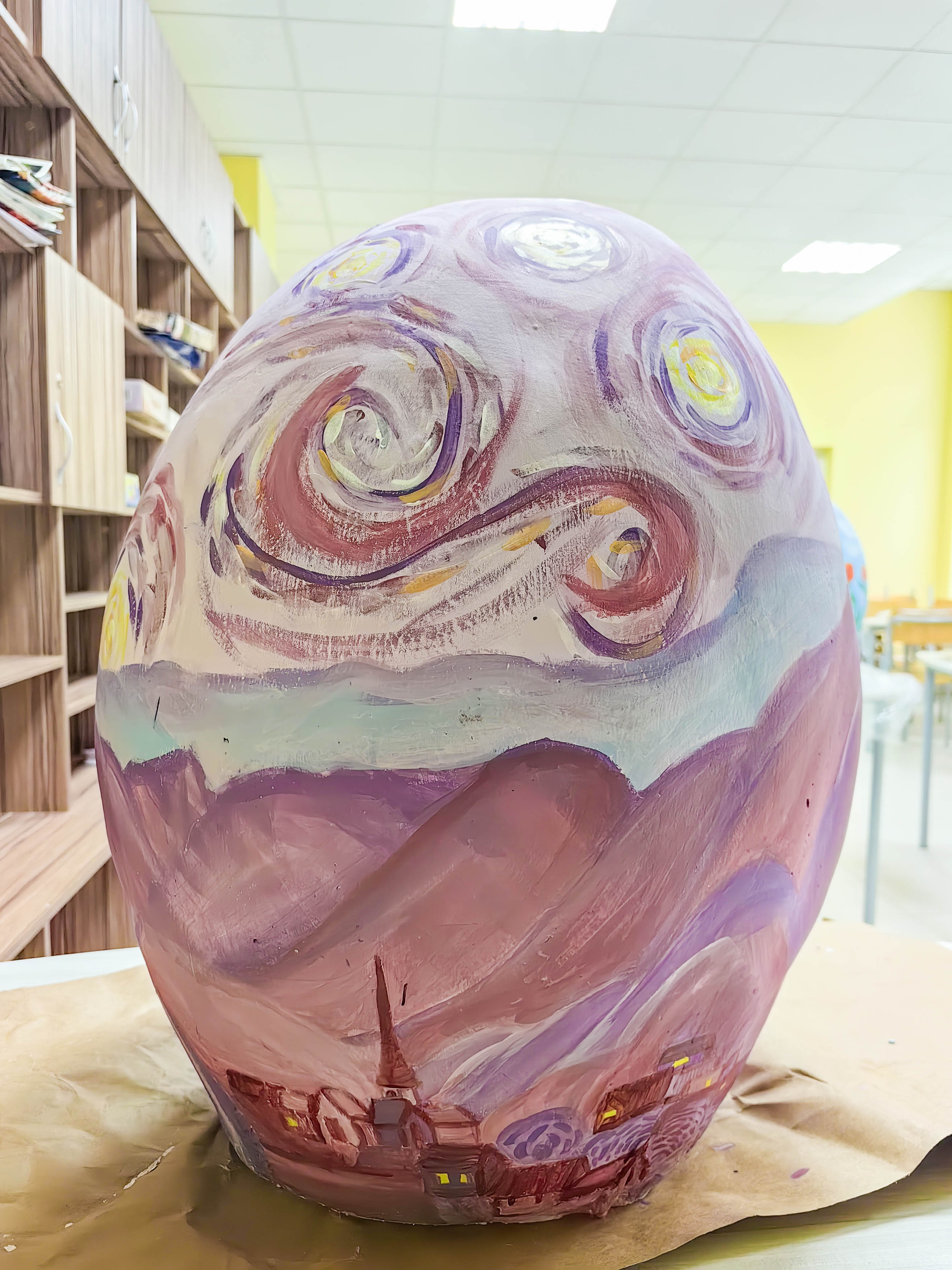 Ученици от групите по интереси в IV и VII клас, абитуриентите от паралелките “Изобразително изкуство” и “Графичен дизайнер”, техните преподаватели и дори училищното ръководство се включиха в изработването на яйцата. Те са с височина около 90 см и са украсени с традиционни великденски мотиви – цветя, зайчета, поздравителни надписи, но и няколко свободни композиции като например реплика на “Звездна нощ” на Ван Гог.