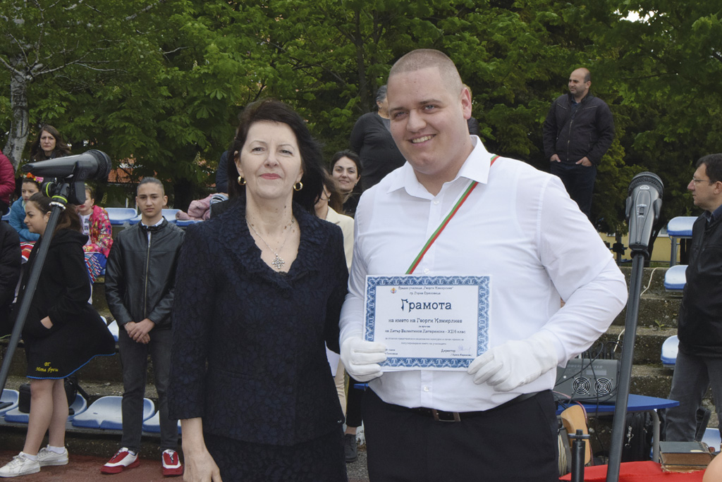 Петър Патарински е тазгодишният носител на почетната грамота на името на Георги Измирлиев. Дванадесетокласникът получи наградата си за отлично представяне в национални конкурси и личен принос за популяризиране на училището. Отличието му бе връчено по време на тържеството по повод патронния празник на СУ “Георги Измирлиев”.