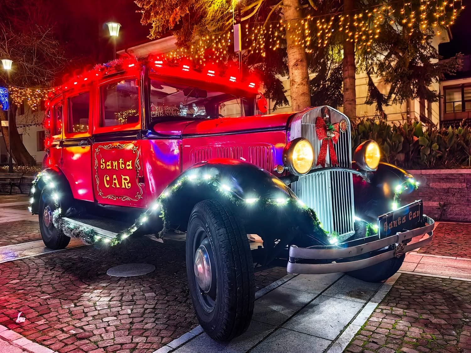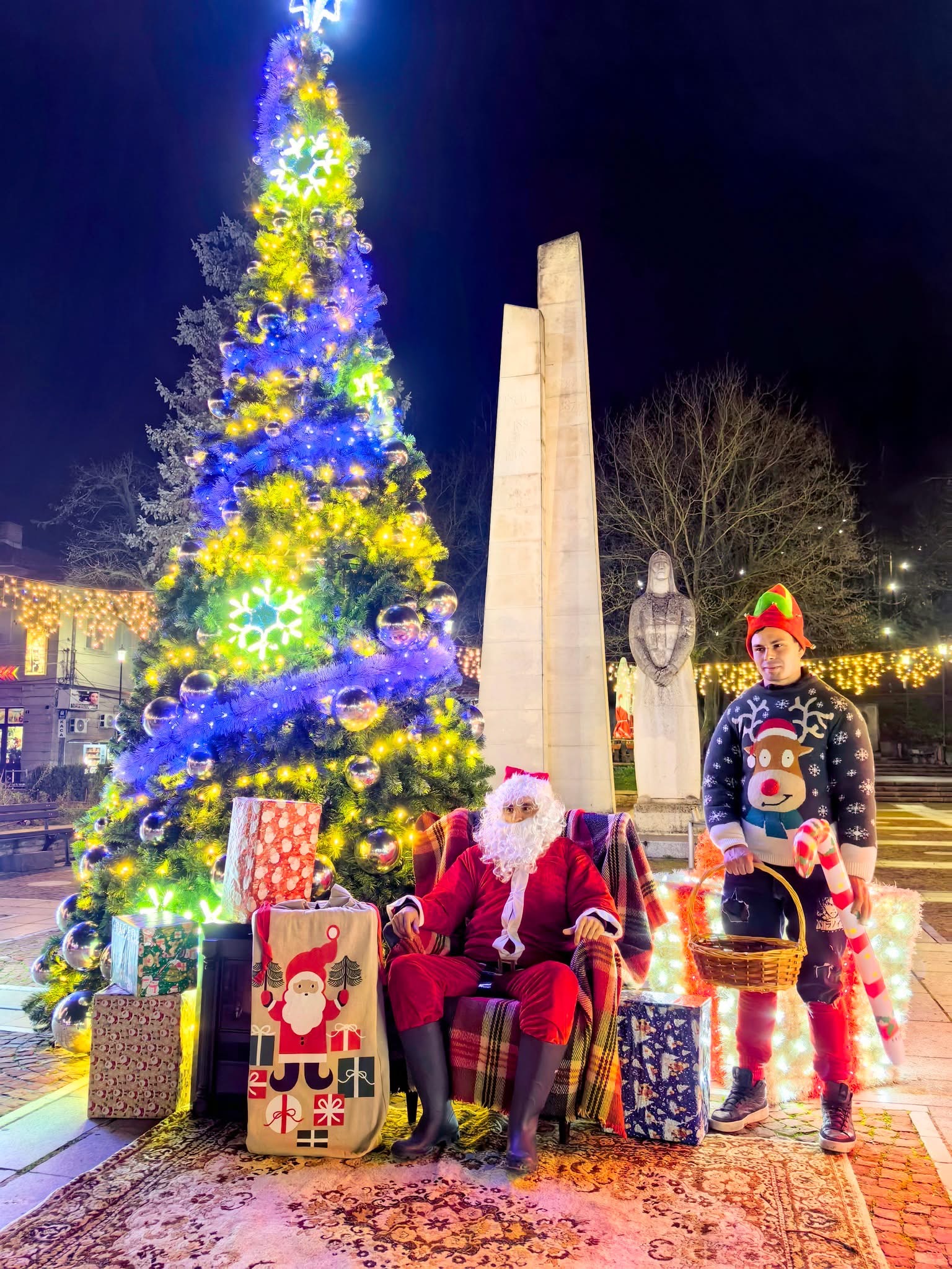Празничното настроение завладя малки и големи, а най-нетърпеливи бяха децата, които с широки усмивки посрещнаха Дядо Коледа. Тази година белобрадият старец пристигна по нетрадиционен начин – не с шейна и елени, а с уникален 100-годишен ретро автомобил, украсен с хиляди коледни лампички и озвучен с весели празнични мелодии.