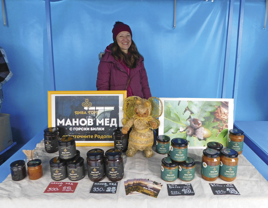 На отсрещната сергия пък имаше манов мед с горски билки от Източните Родопи. 950 грама от него струва 25 лева, а 500-грамовите бурканчета са по 13 лева. Клиентите могат да си вземат и суров пчелен мед “Дива гора”, който е по 10 лева.