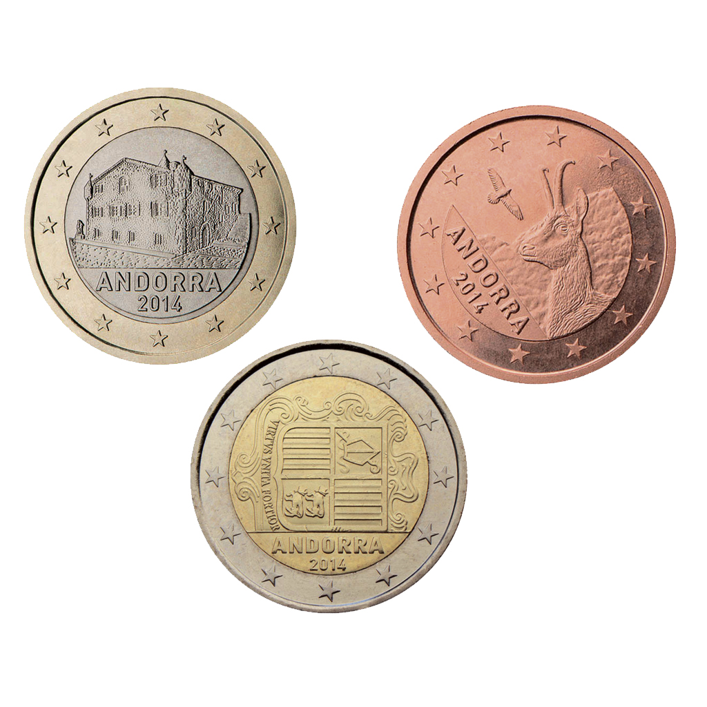 Върху монетите от 1, 2 и 5 цента са изобразени пиренейска дива коза и летящ златен орел, две от животните символи на малкото Княжество.