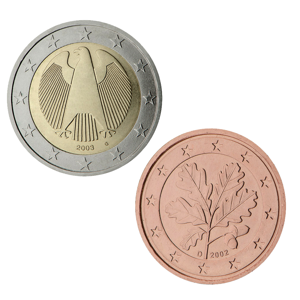Германските евромонети имат три дизайна. За монетите от 1, 2 и 5 евро основният мотив е дъбовата клонка, която е пренесена от бившите немски пфениги. Основното изображение върху монетите от 10, 20 и 50 цента е Бранденбургската врата, символ на разединението и след това на обединението на германския народ. Изображението е на Райнхард Хайнсдорф. На монетите от 1 и 2 евро е изобразен символът на Германия, орелът, ограден от звездите на Европа. Автор на дизайна е семейство Хайнц Хойер и Снежана Русева – Хойер, която е българка.
