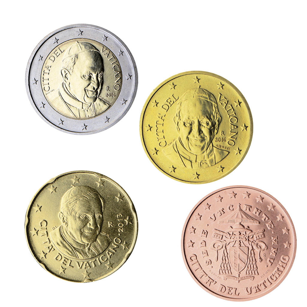 Върху монетите от всички серии са изобразени 12-те звезди на европейското знаме, надписът “CITTА DEL VATICANO”, годината на емитиране и знакът на монетния двор.