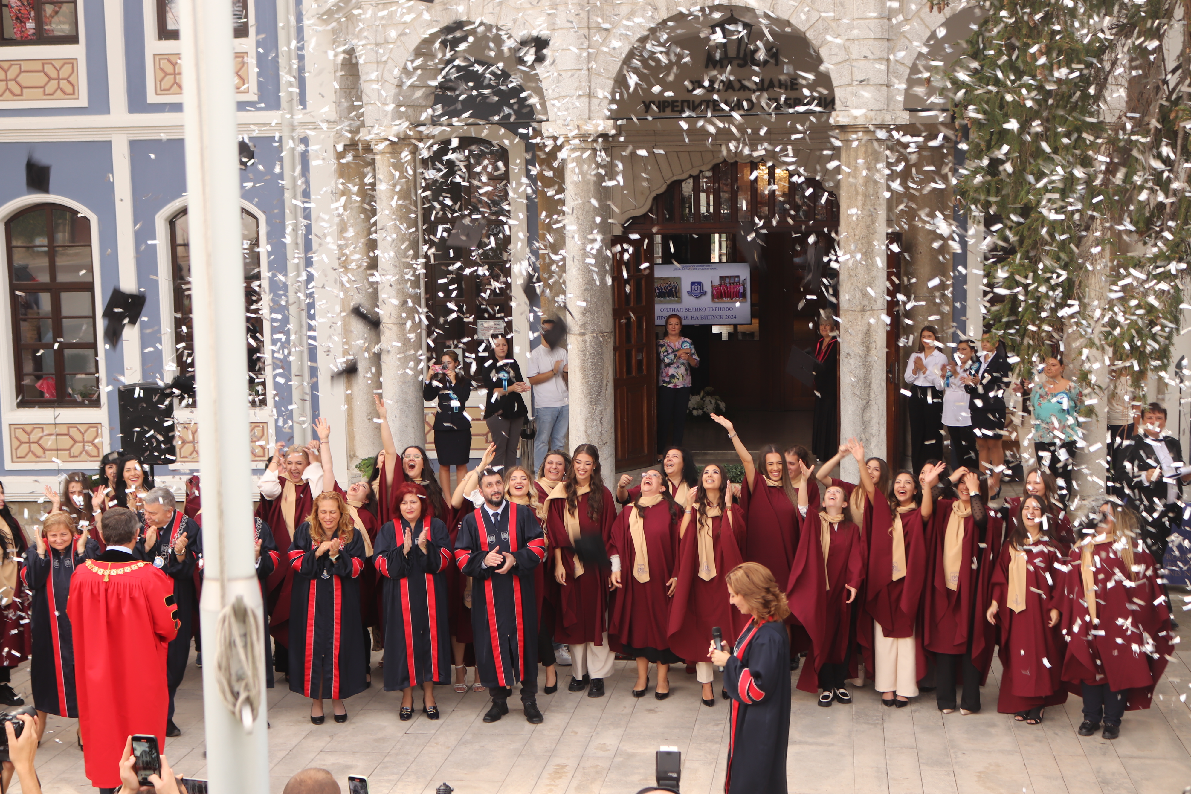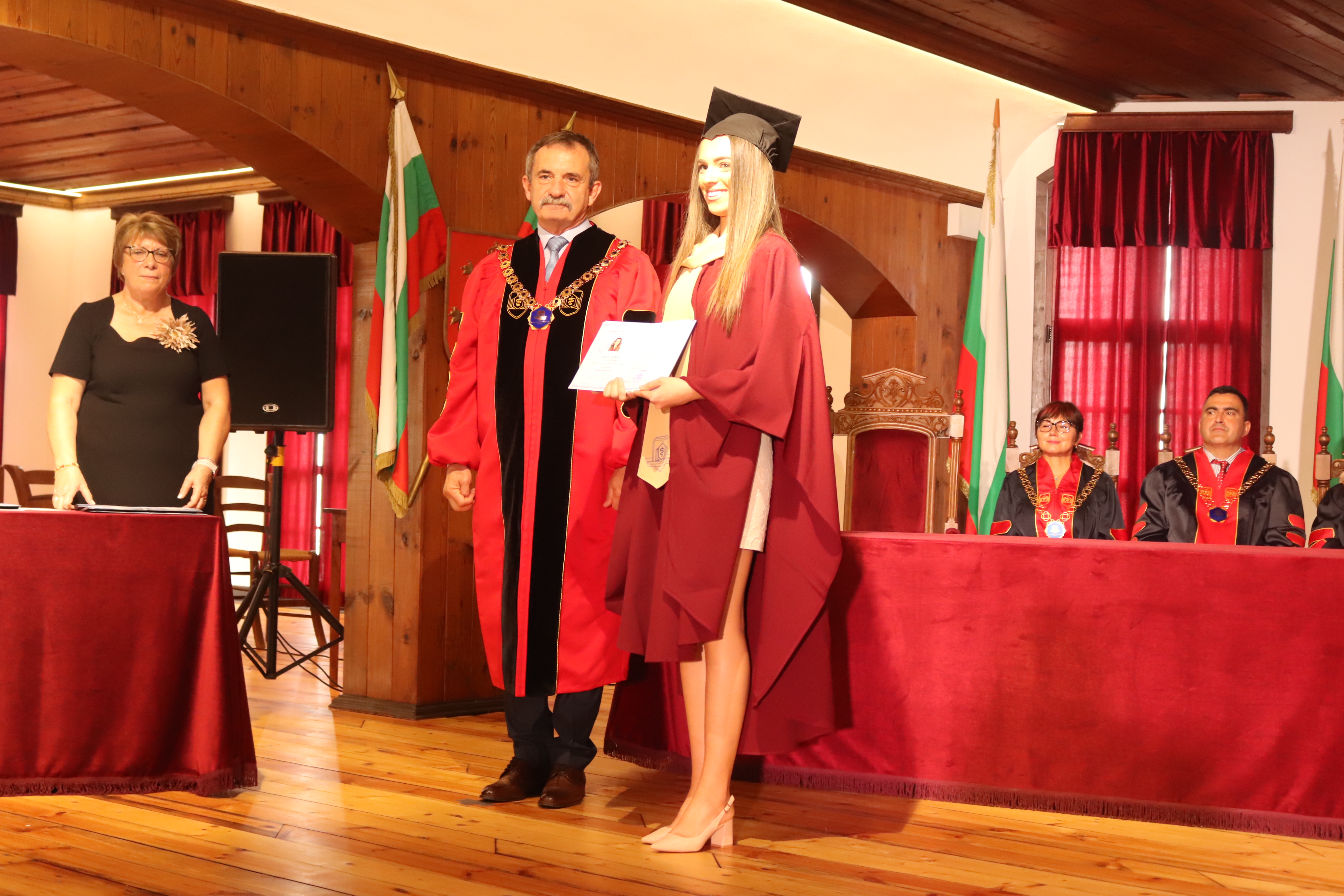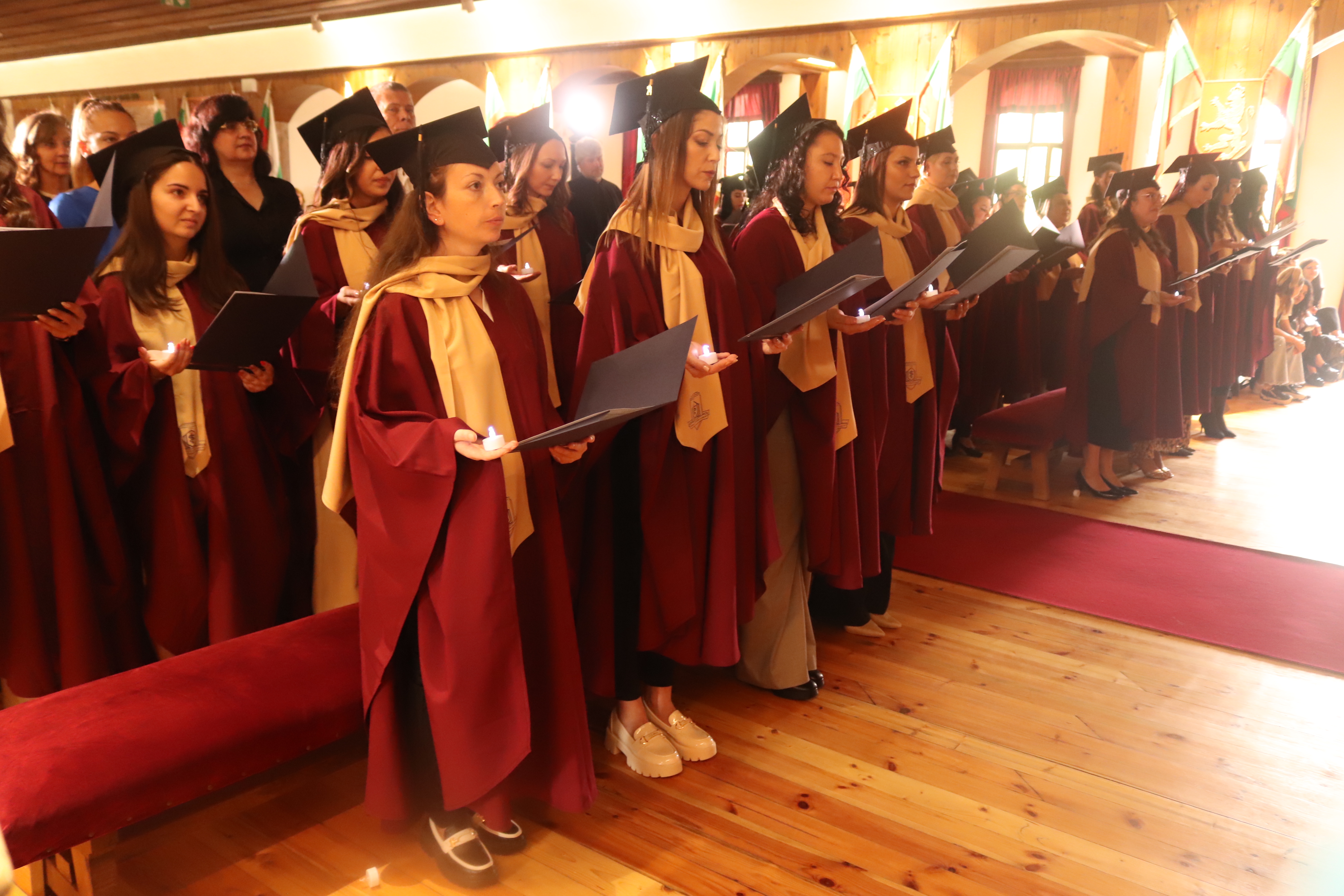 Първенците на двете специалности – Мария Денчева и Нели Костадинова, прочетоха текста на клетвата, която техните колежки повториха. След тържествената част, пред музея „Възраждане и Учредително събрание“ абсолвентките спазиха неофициалния академичен ритуал и хвърлиха високо във въздуха своите шапки. Церемонията завърши с прегръдки и много сълзи от щастие.