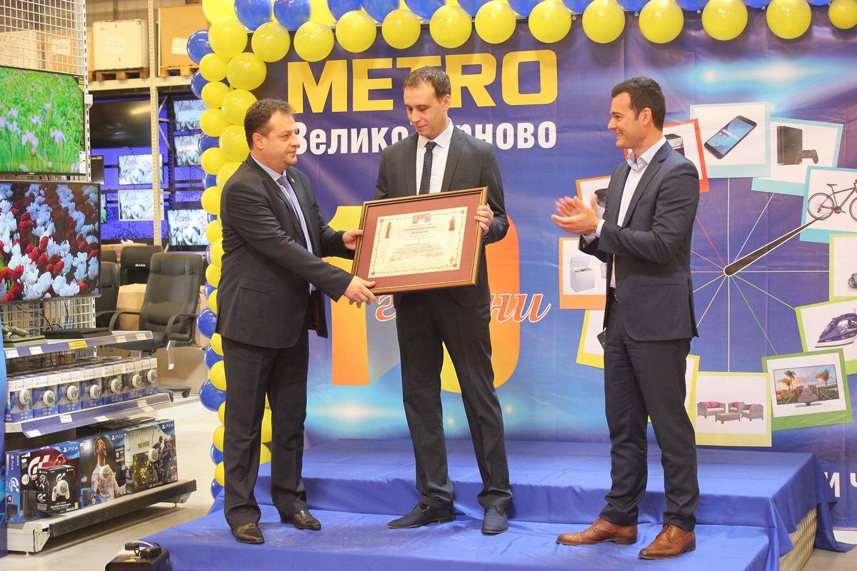 В приветствието си кметът на Велико Търново Даниел Панов заяви, че местната власт винаги е подкрепяла бизнеса, защото това повишава жизнения стандарт на хората, които живеят в региона. По повод годишнината градоначалникът връчи на МЕТРО “Староплестолна грамота” за големия принос в развитието на икономиката на общината.