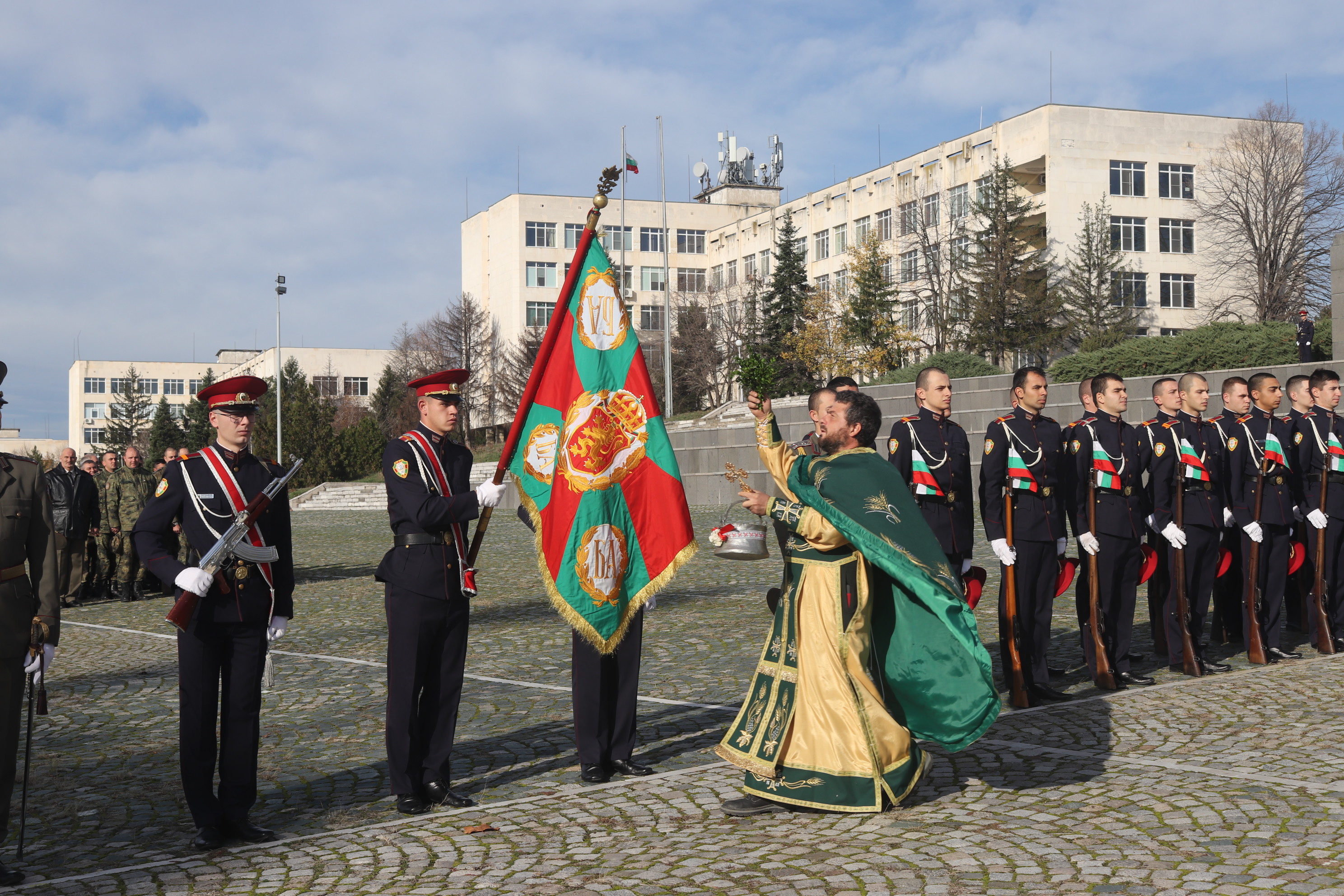 По време на тържеството бяха прочетени поздравителни адреси. А зам.- кметът Георги Недев поздрави военнослужещите, курсантите, кадетите и работещите в НВУ от името на кмета Даниел Панов. „Днес е един специален ден и за НВУ и за Велико Търново, защото Военният университет и В. Търново са взаимно свързани. Гордейте се с България и на Националния военен университет, защото оттук са тръгнали личности, които са били важни за държавата ни. Празниците в града без вас няма да изглеждат по този начин. Вие сте и в студ, и в мраз, и в пек, на всички празници, които са чествани от Община Велико Търново. Но вие сте и там, където има трудности и бедствия и това лято беше едно такова. Последния пример е пожарът на Гарга баир, където с общи усилия заедно бързо и много успешно се справихме. Искам да ви пожелая да бъдете здрави, да имате личностни щастливи моменти и да бъдете успешни. Да живее българският войник“, завърши словото си зам.-кметът Георги Недев.